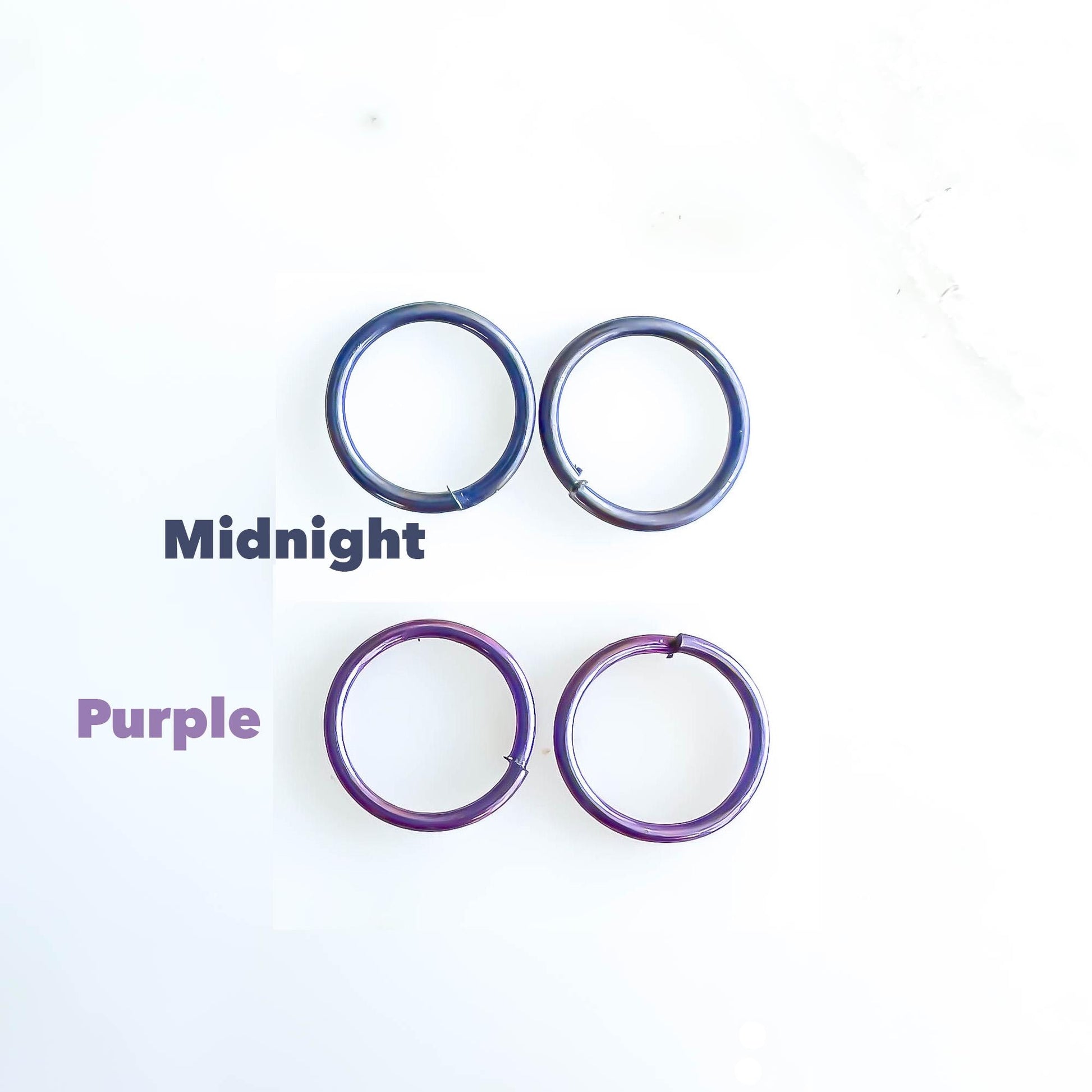 Niobium mini continuous hoop earrings, Halloween edit. Available in colors purple and midnight.