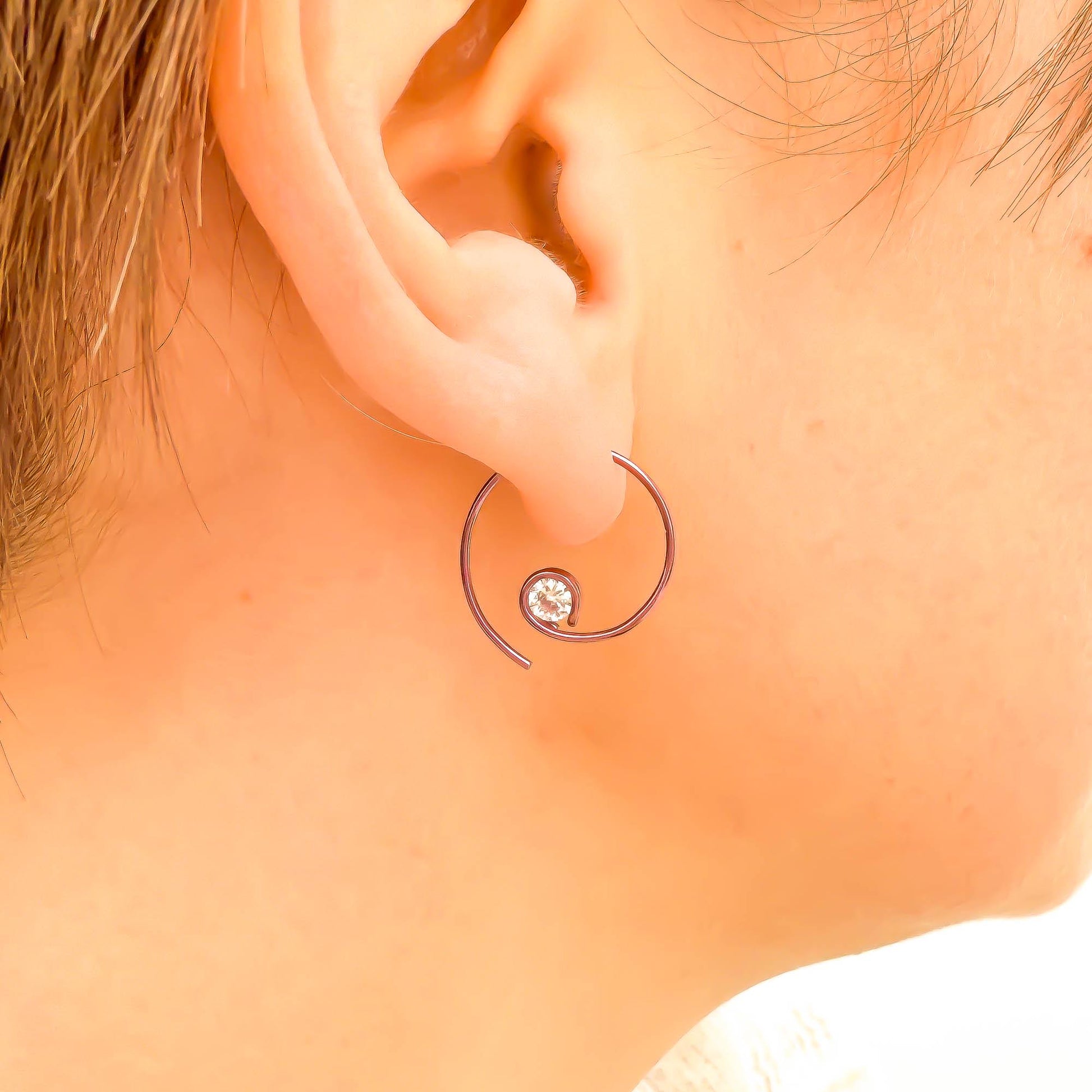 • Handcrafted mini spiral hoop earrings, with 4mm CZ (cubic zirconia) simulated diamonds.