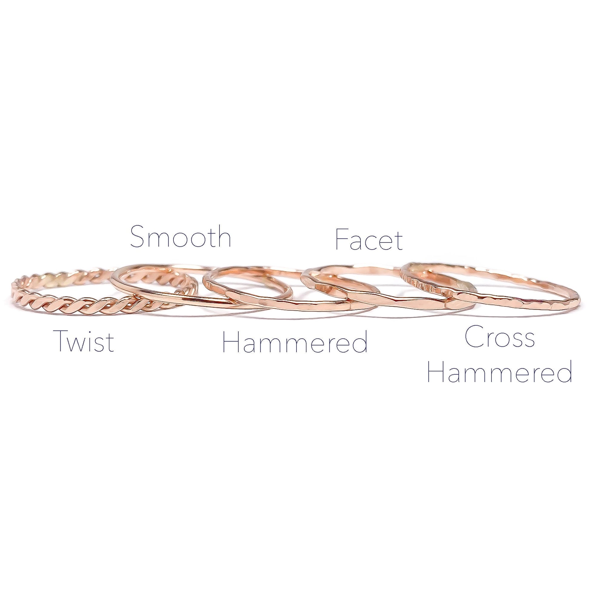 • Available in FIVE TEXTURES: smooth, cross hammered, hammered, facet, and twist.
