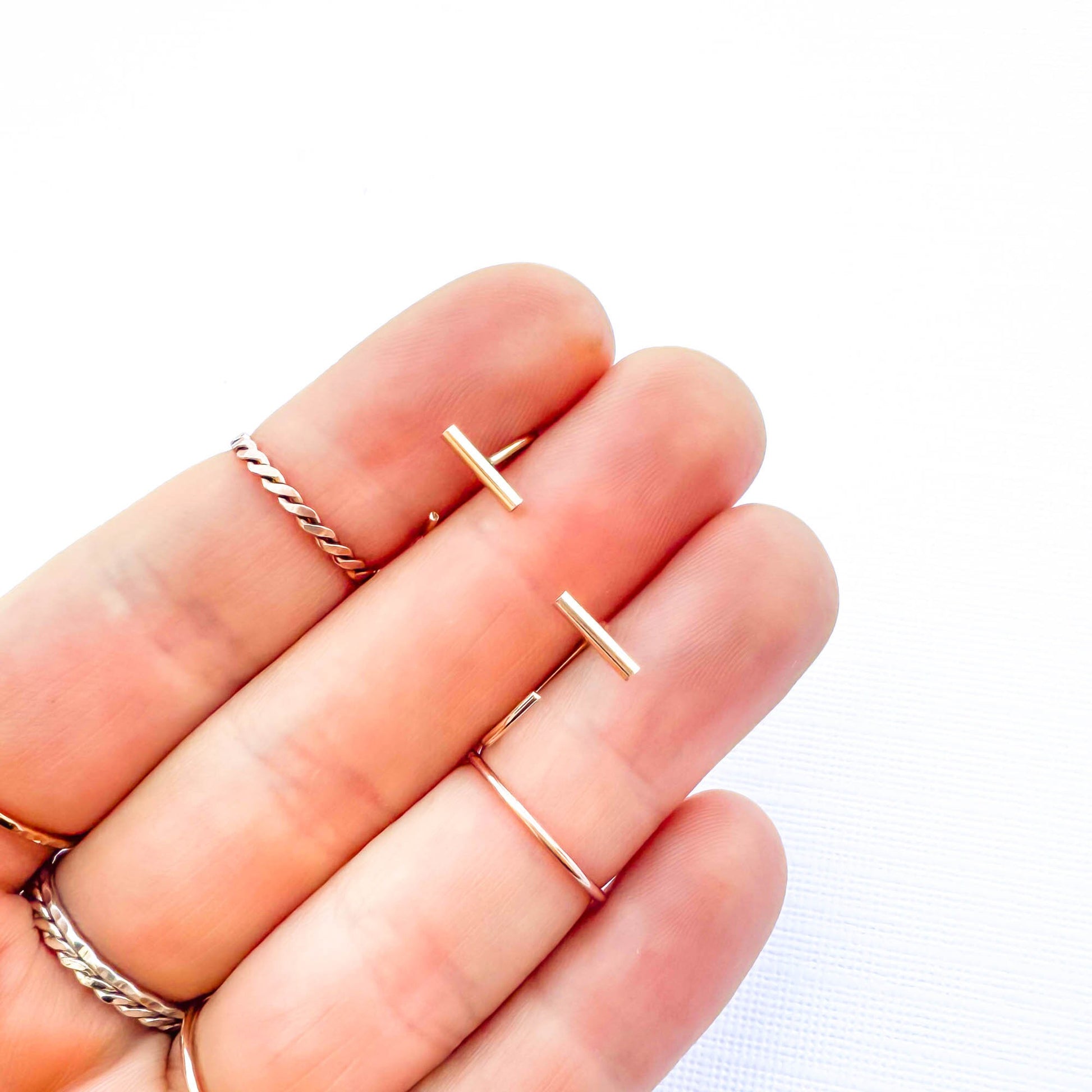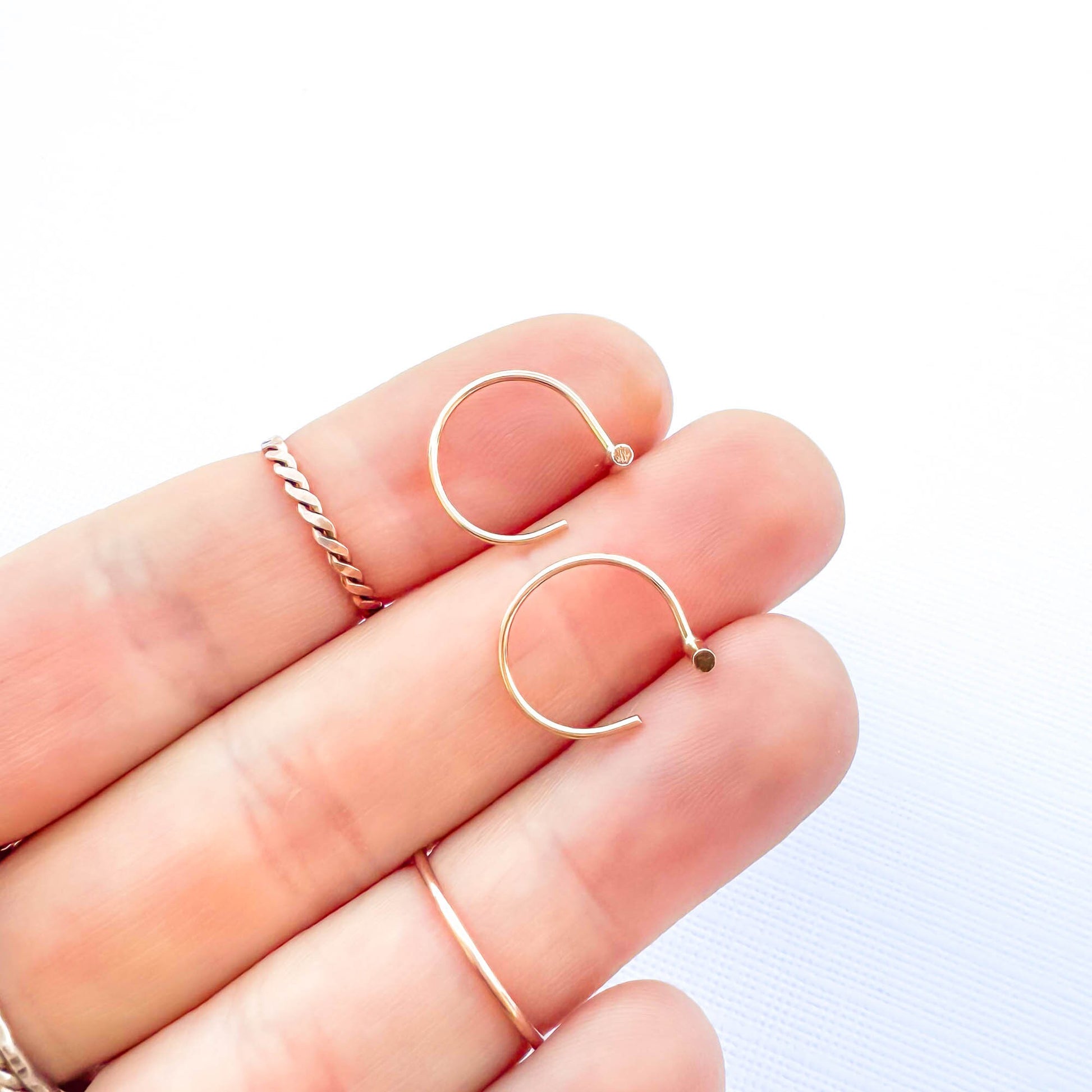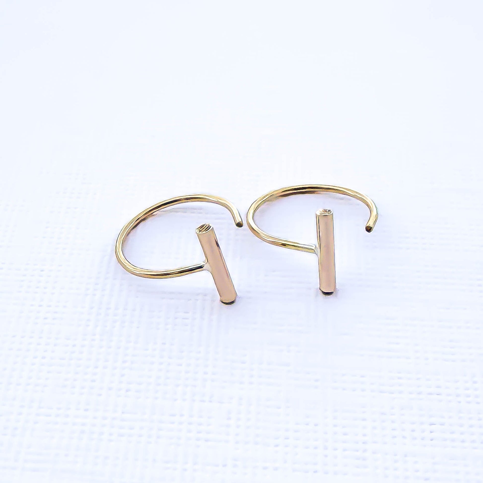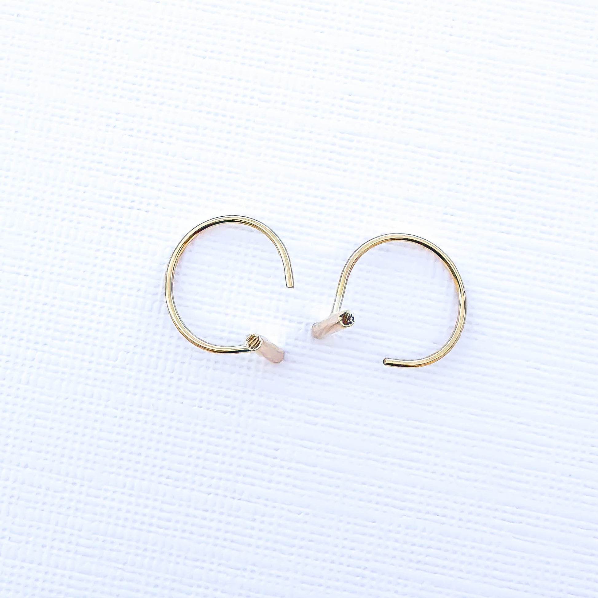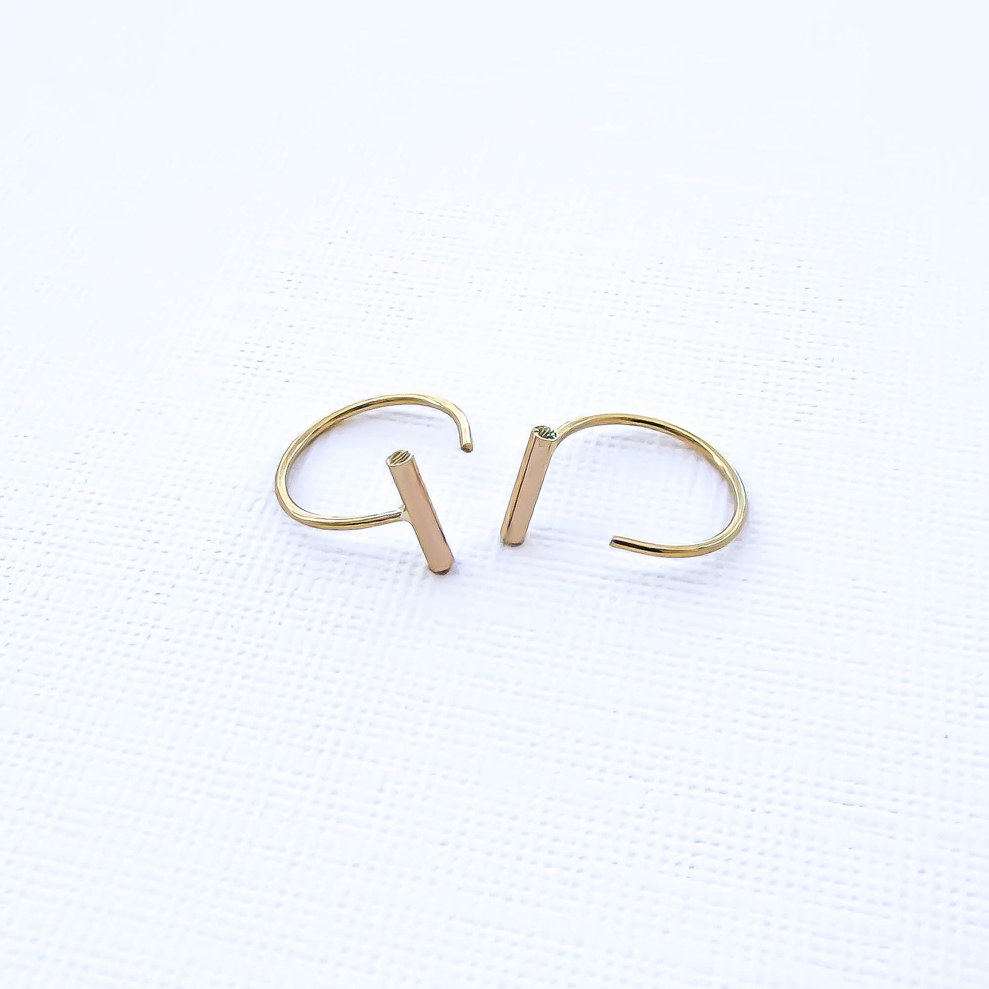 Round Bar Threader Half Hoop Earrings, 14K Gold Filled