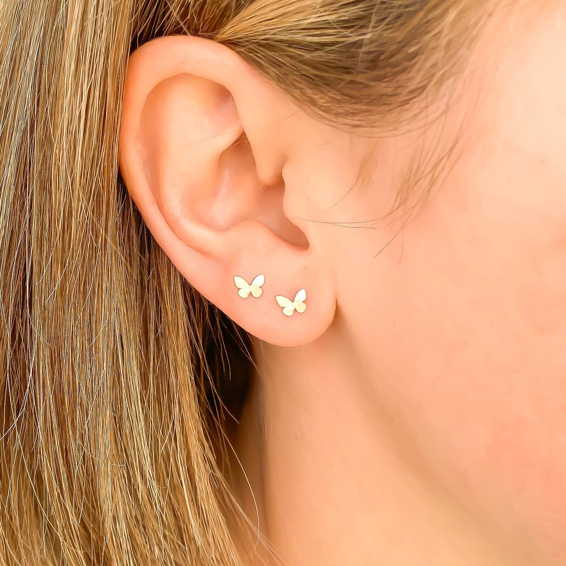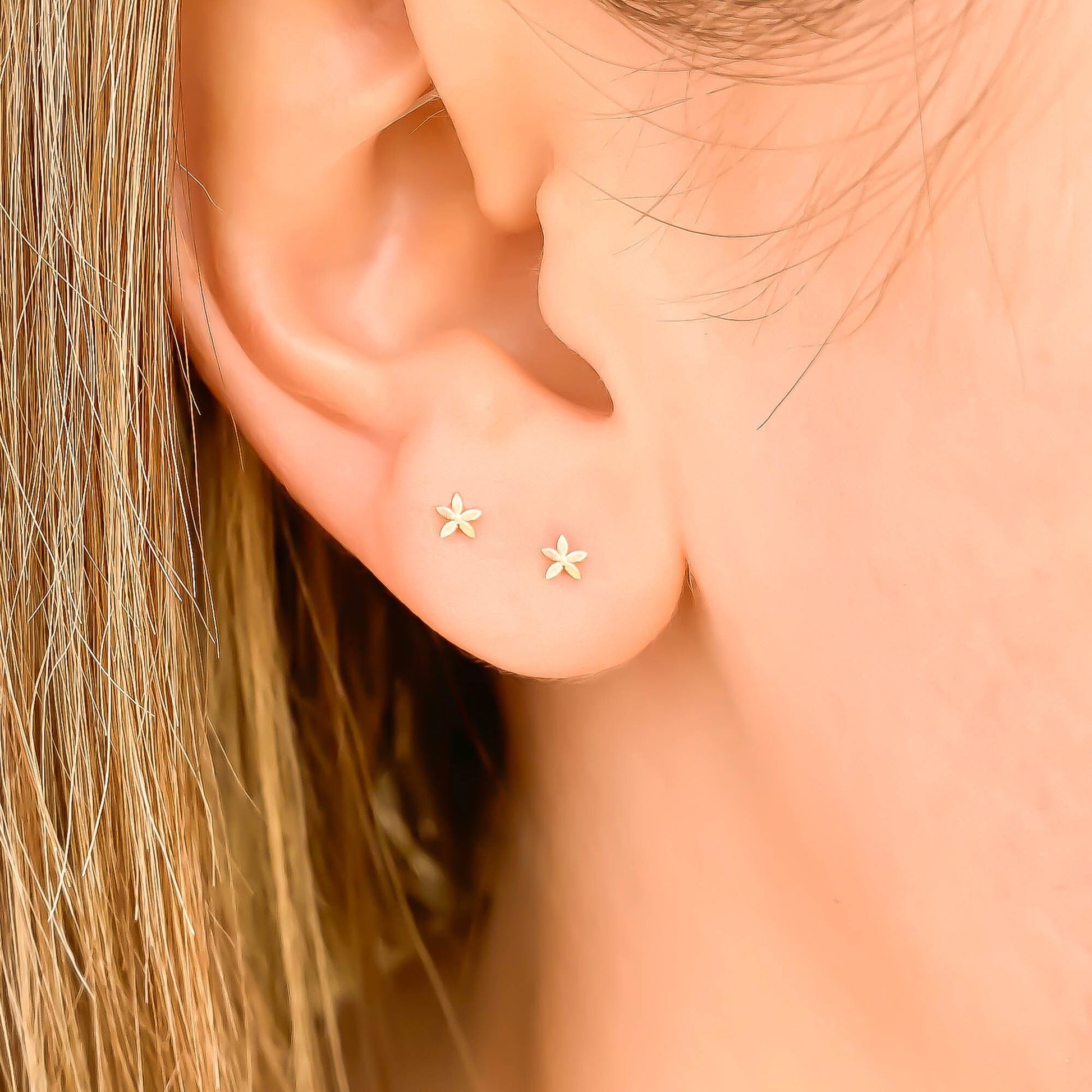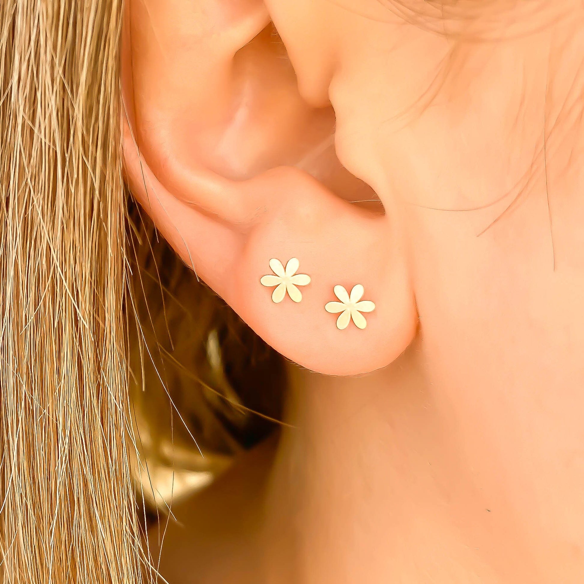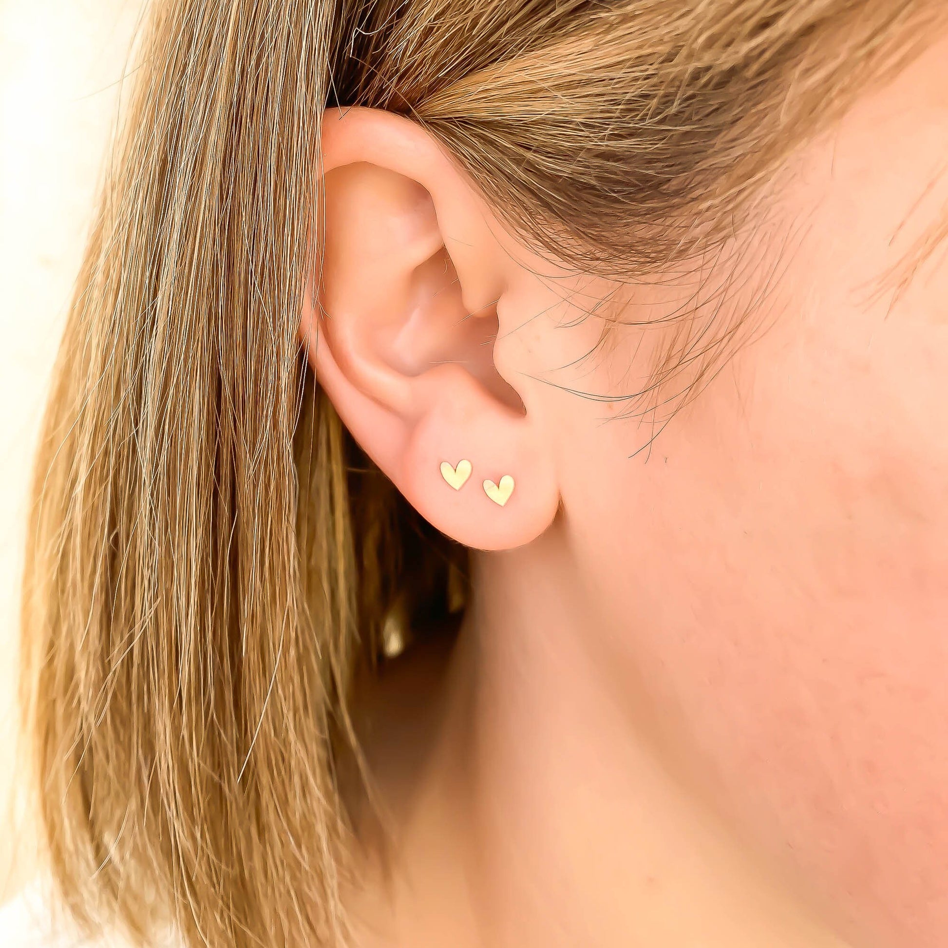 First of all, shipping was SUPER fast which I really appreciate because I was excited to wear them. I bought the solid gold hearts and they are the perfect size and color, I love them! They are very dainty which is exactly what I was going for. I have 3 ear lobe piercings and could easily wear them in any spot without getting in the way of other earrings. Since they are solid gold I expect them to last forever, so I hope I am right! If these stay in good condition for a few months of daily wear I will definitely be back to buy more! :)