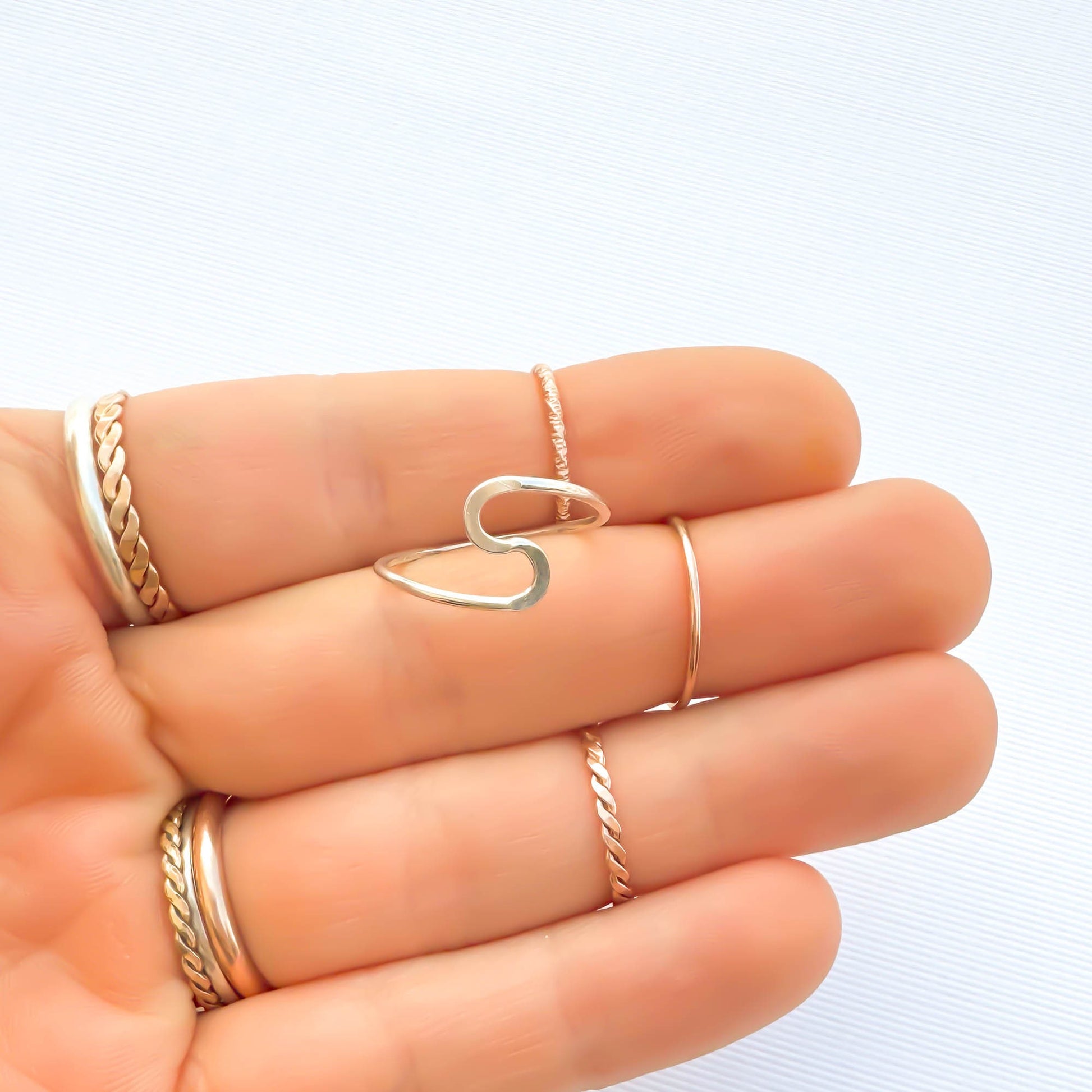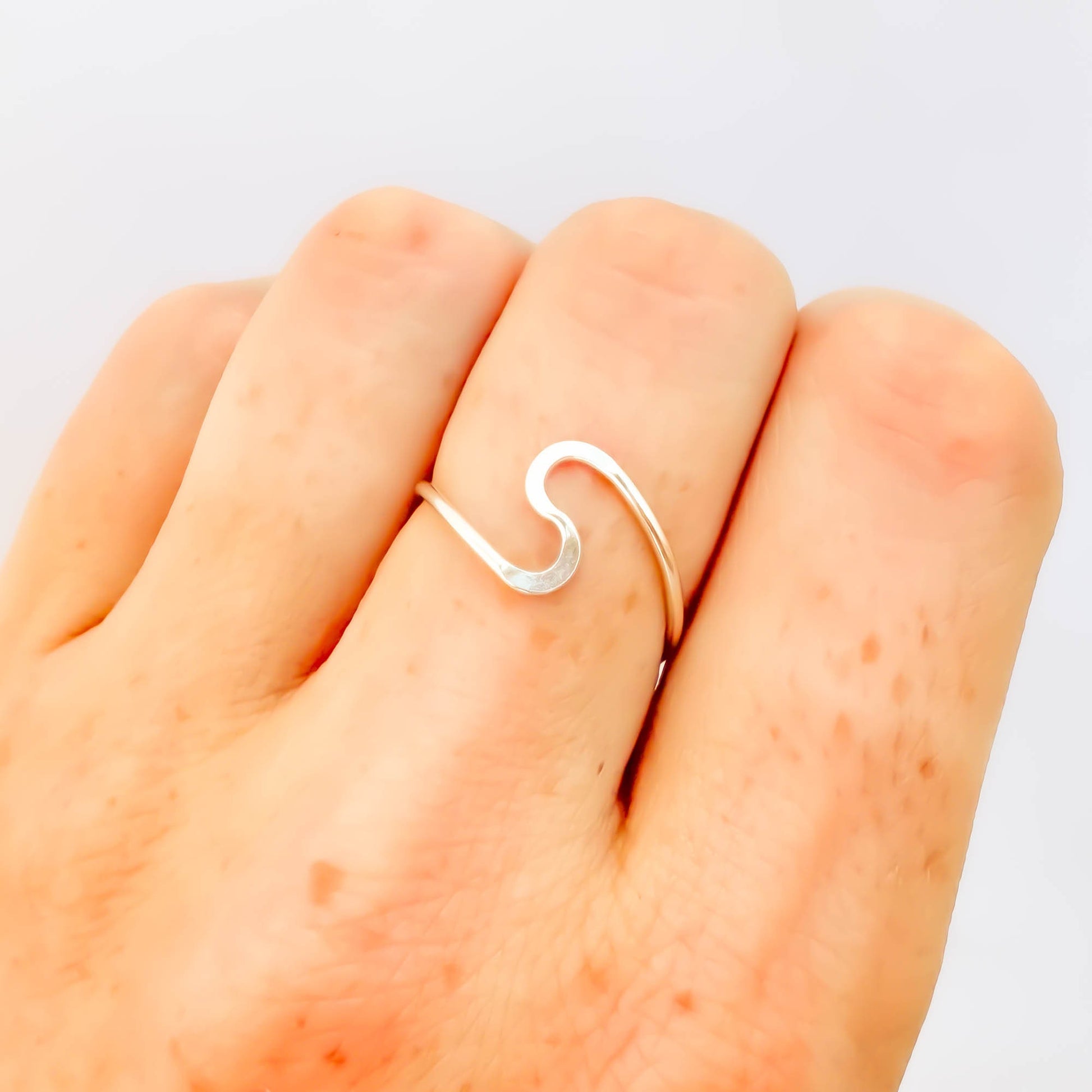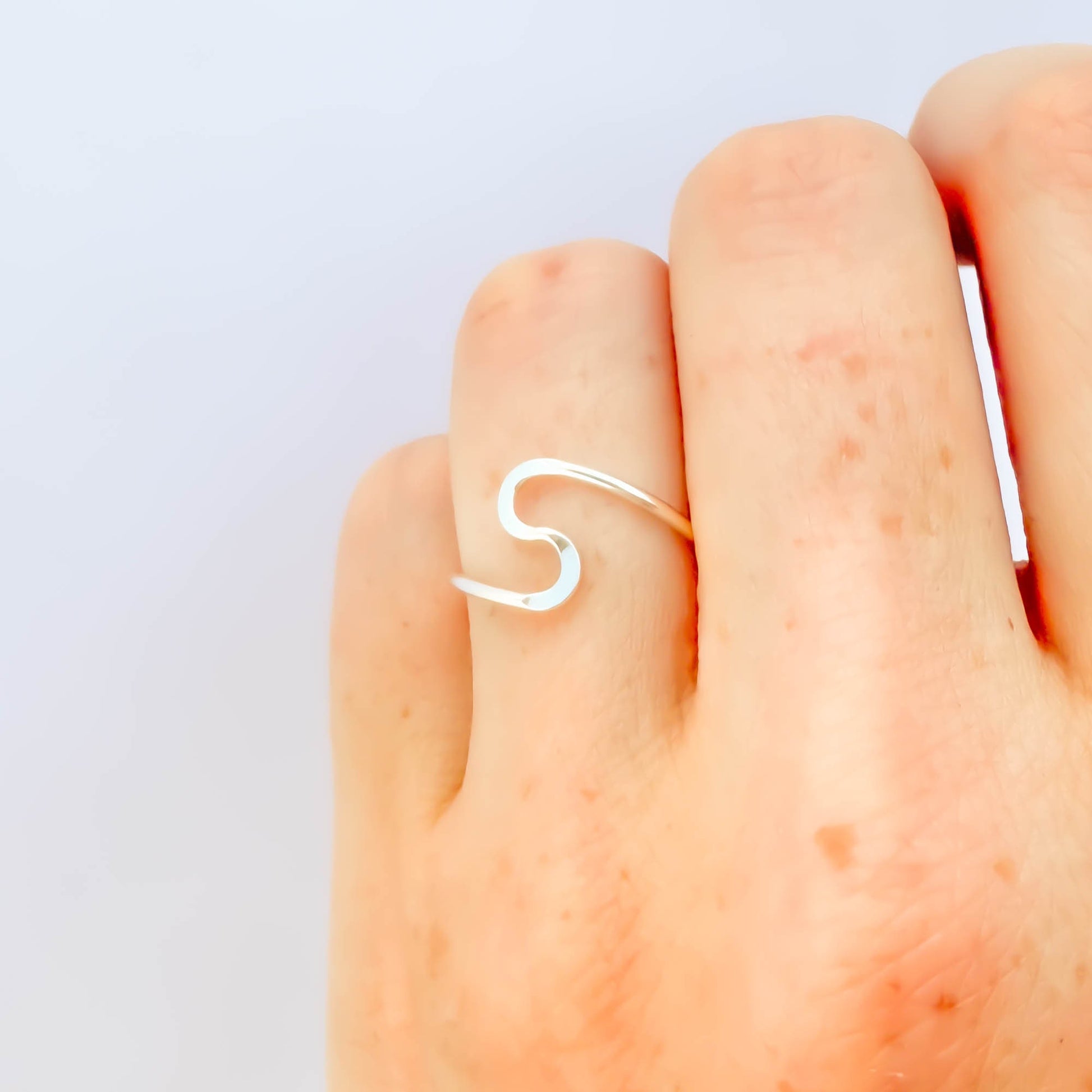 • 8mm wide, 20 gauge sterling silver round wire S ring. Hand formed and partially flattened for a beautiful reflective surface.