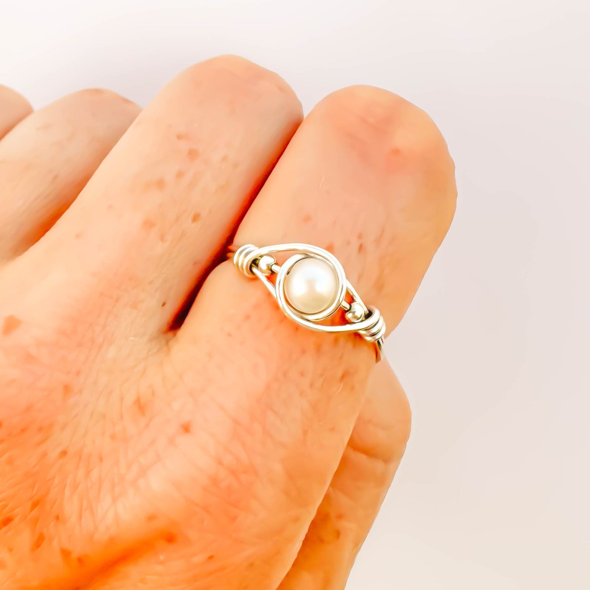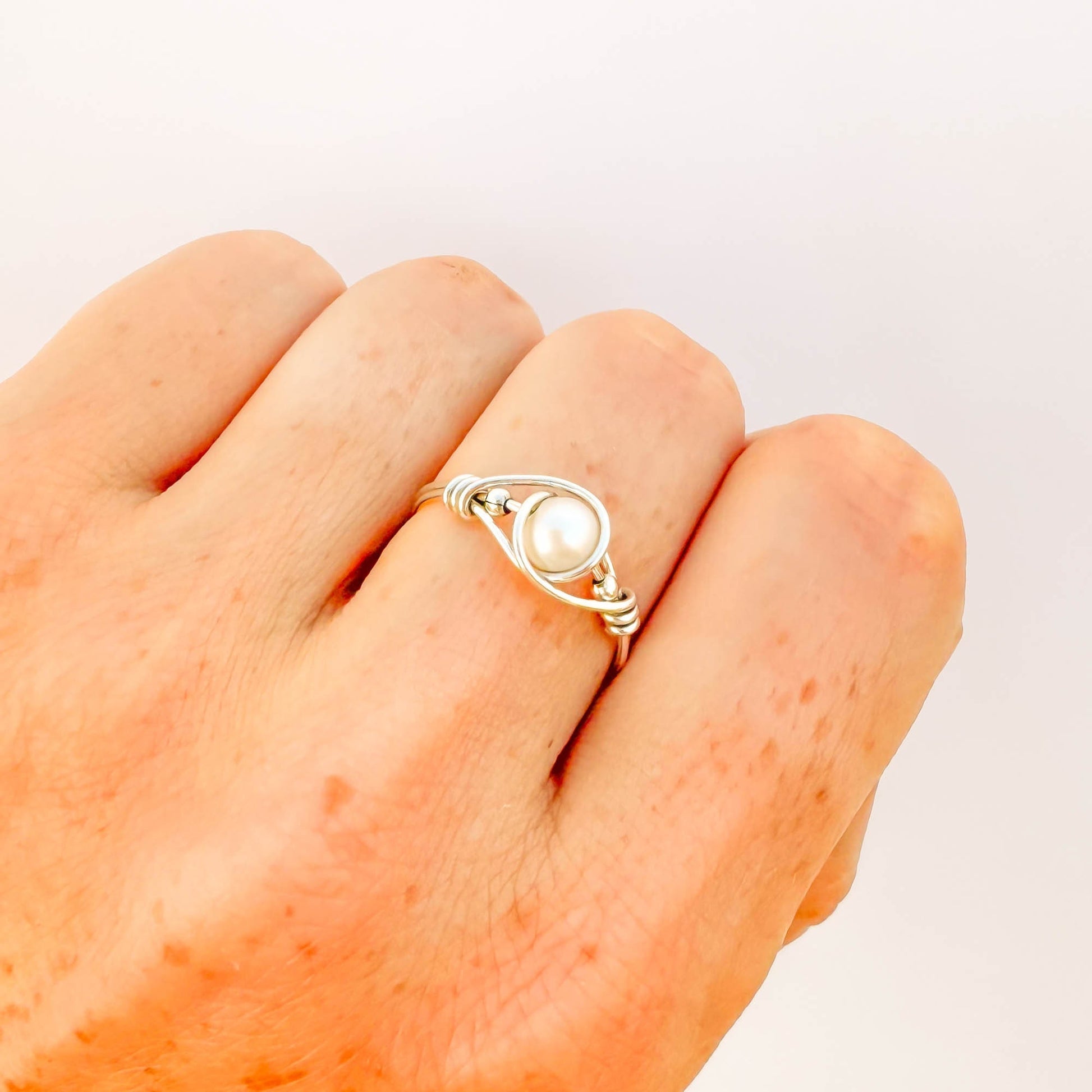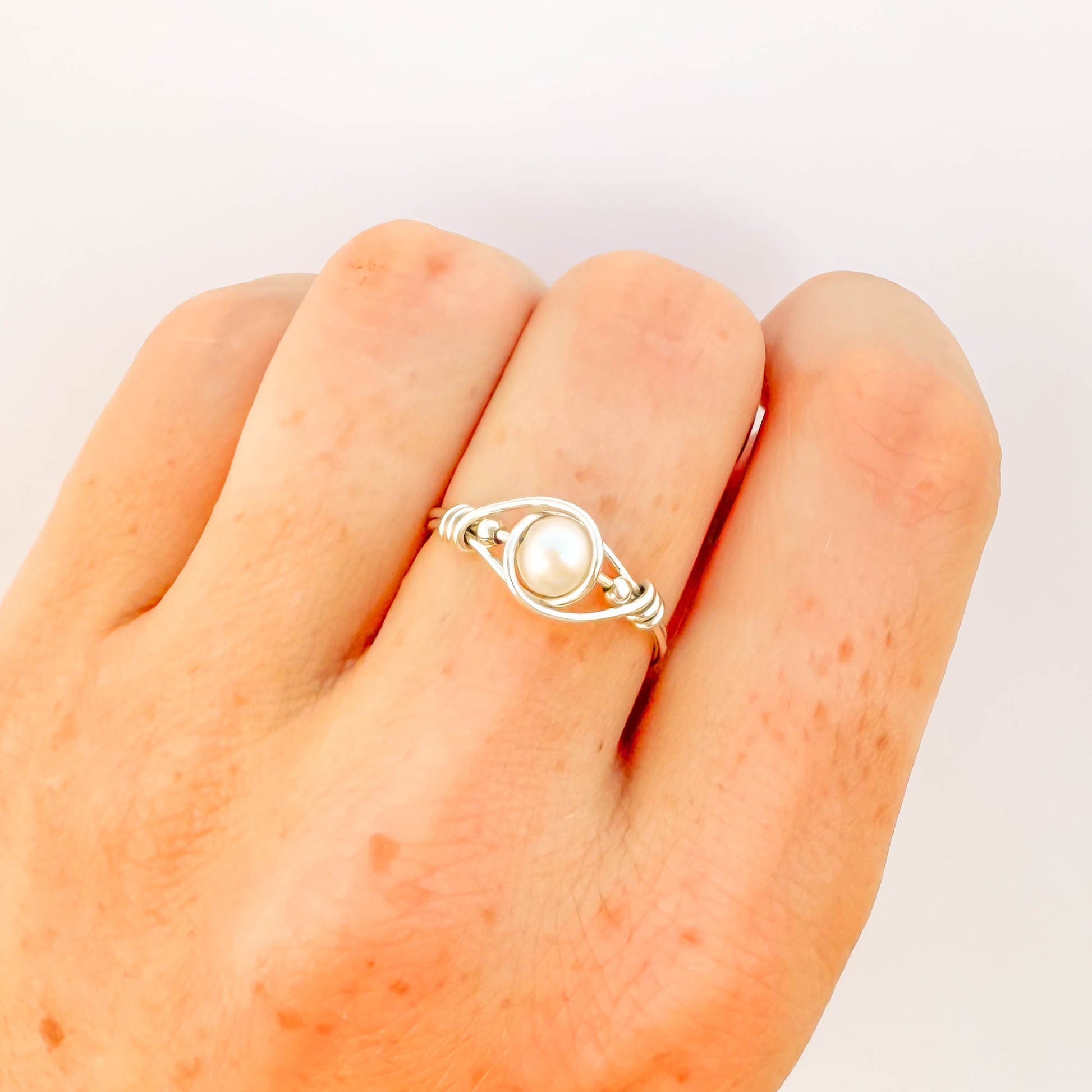 SIZE 6 Genuine Freshwater Pearl Ring, Sterling Silver