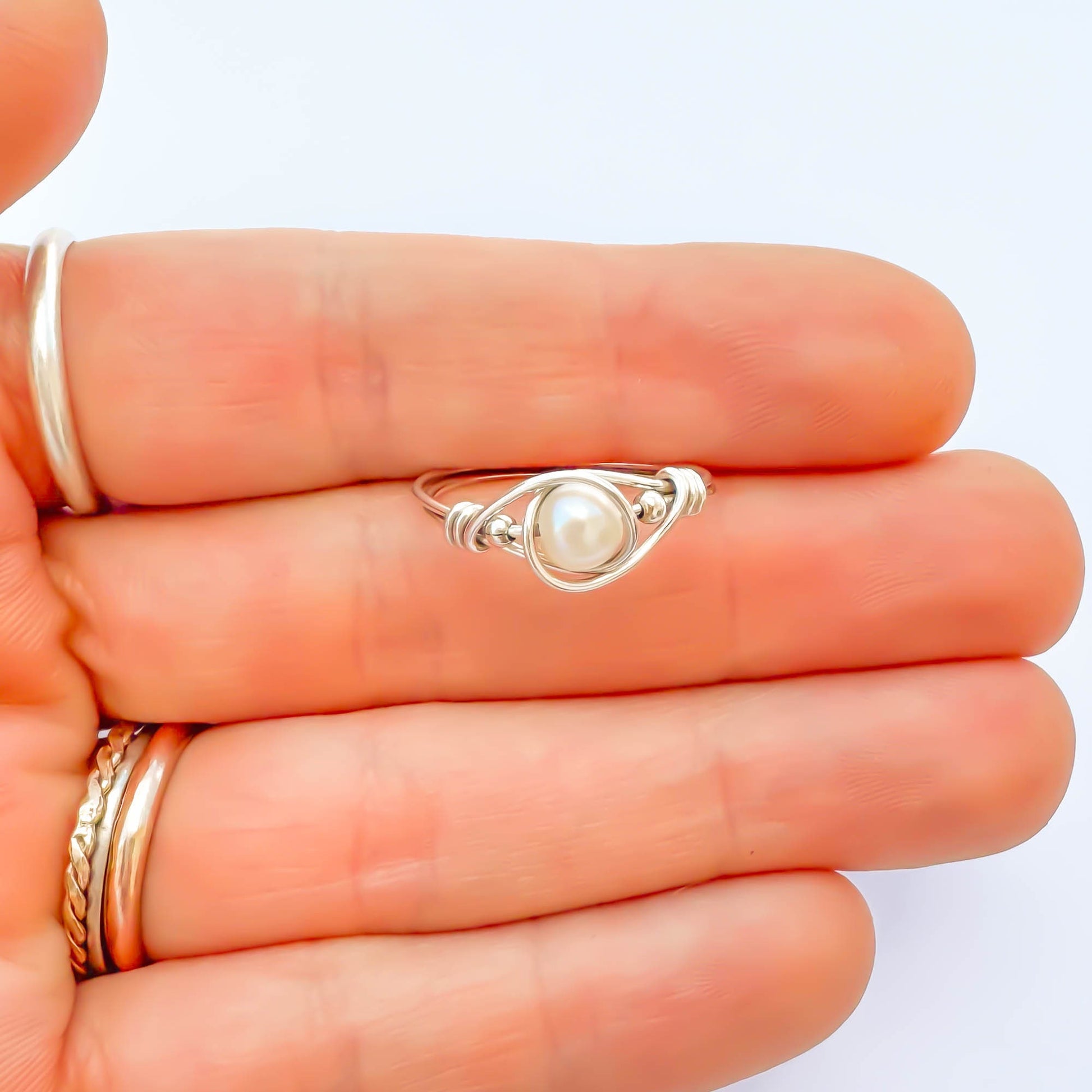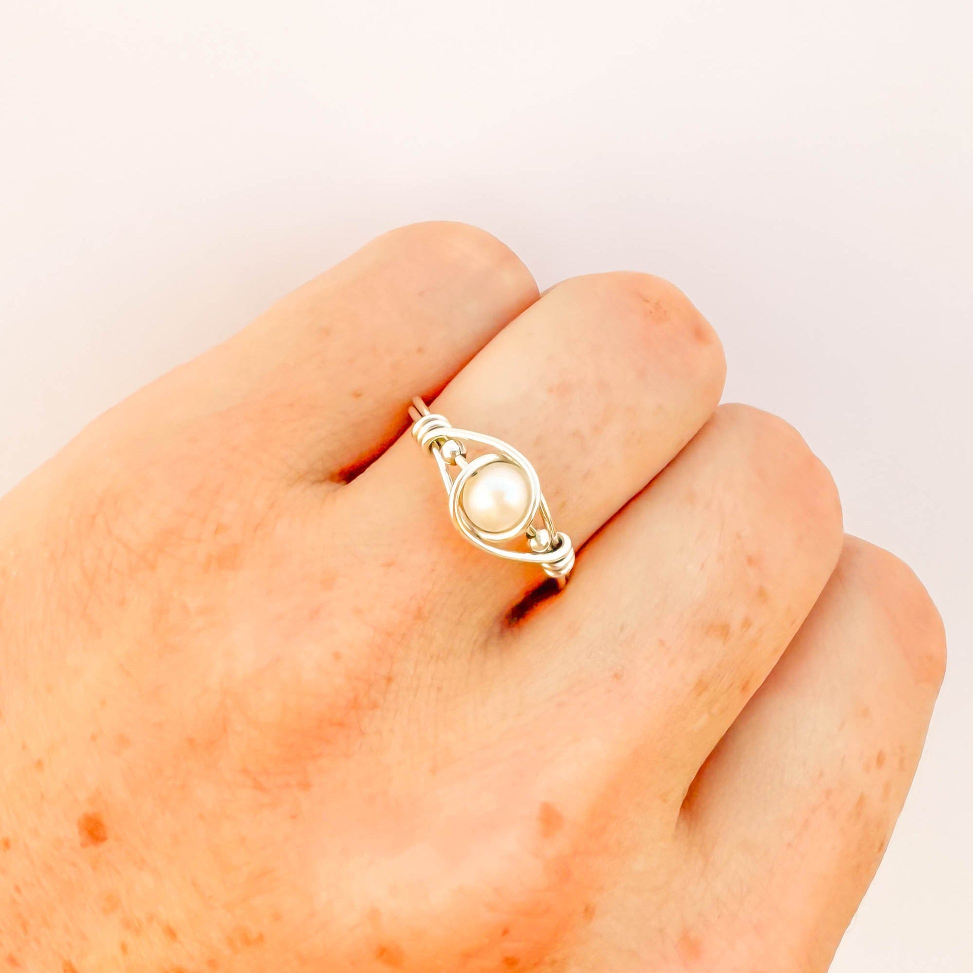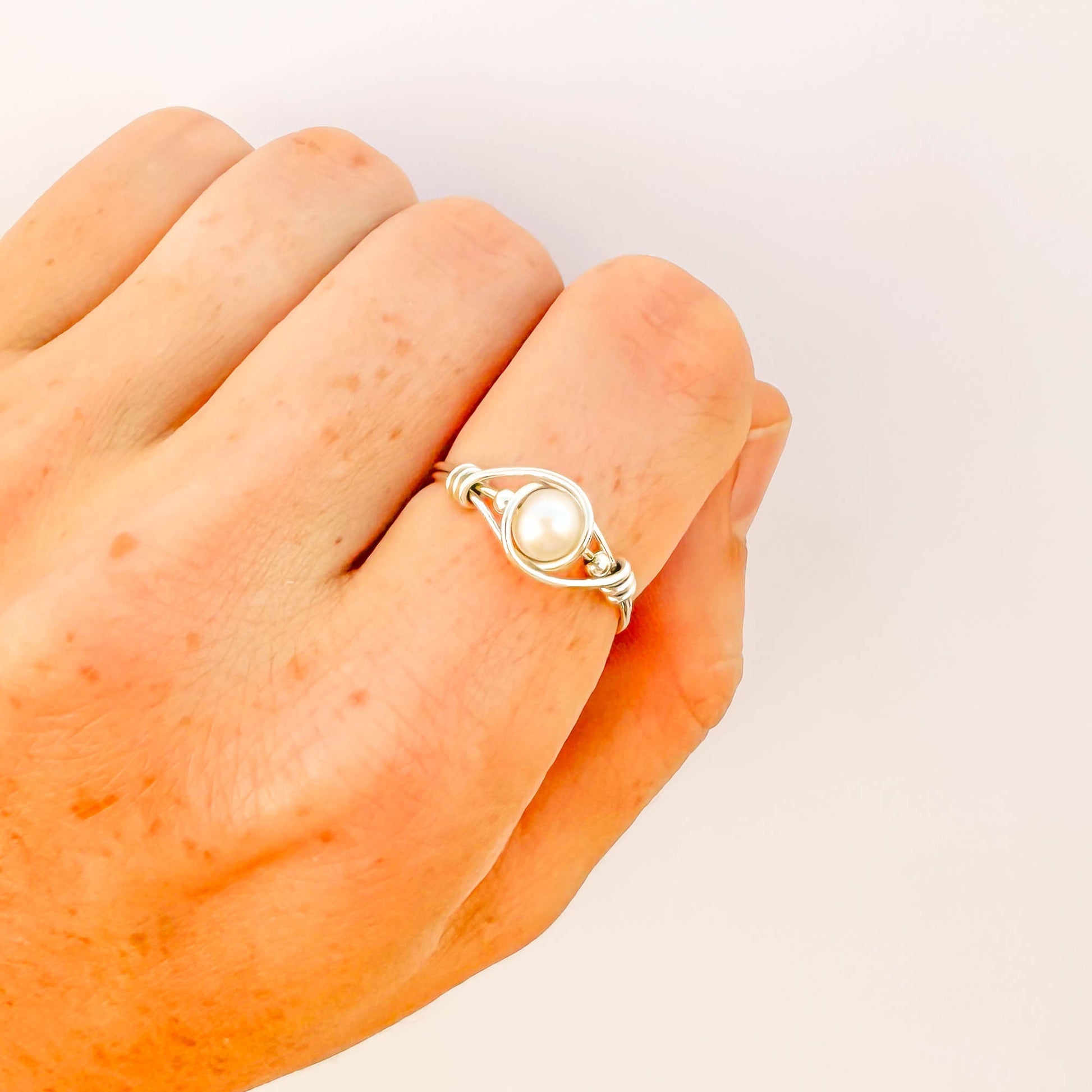 SIZE 6 Genuine Freshwater Pearl Ring, Sterling Silver