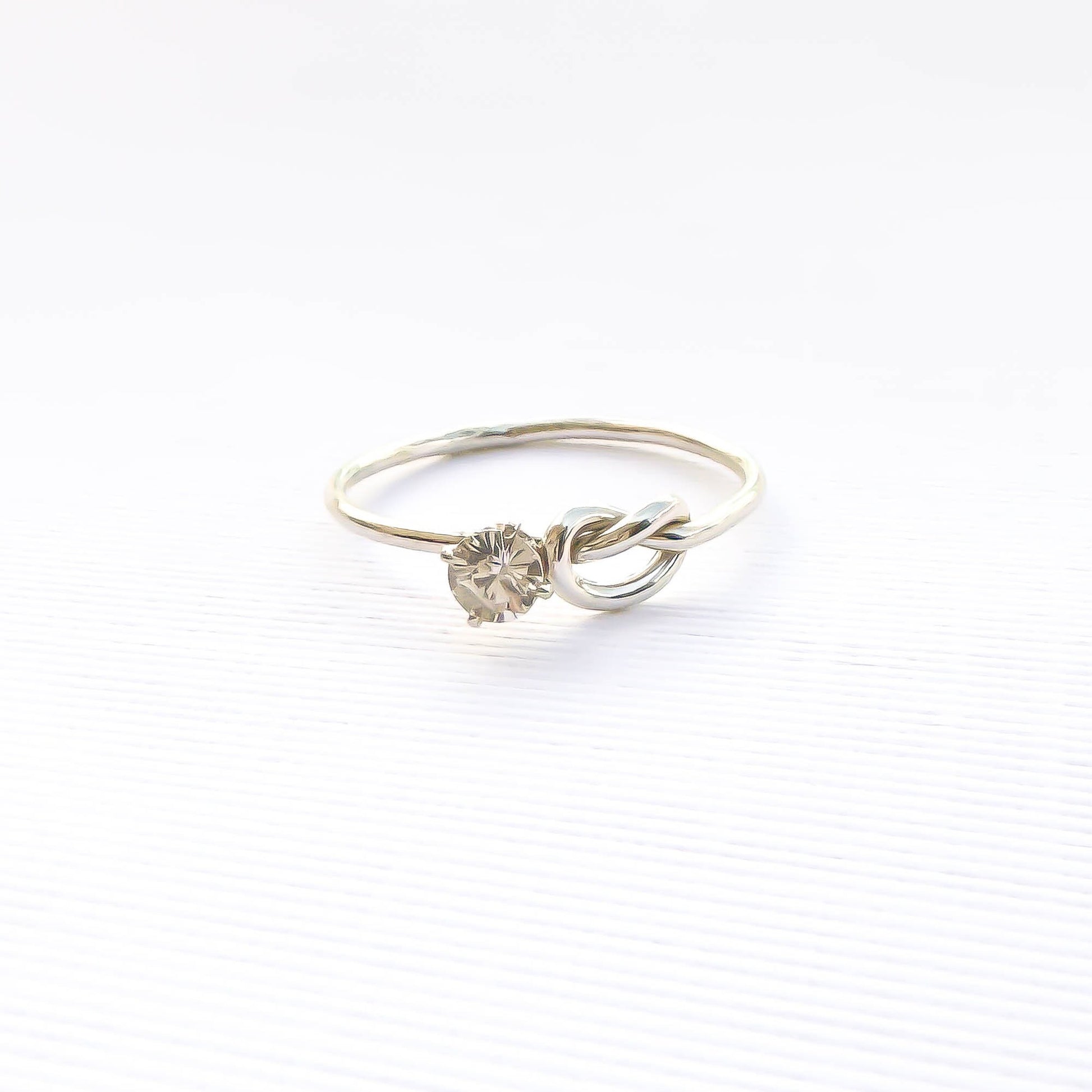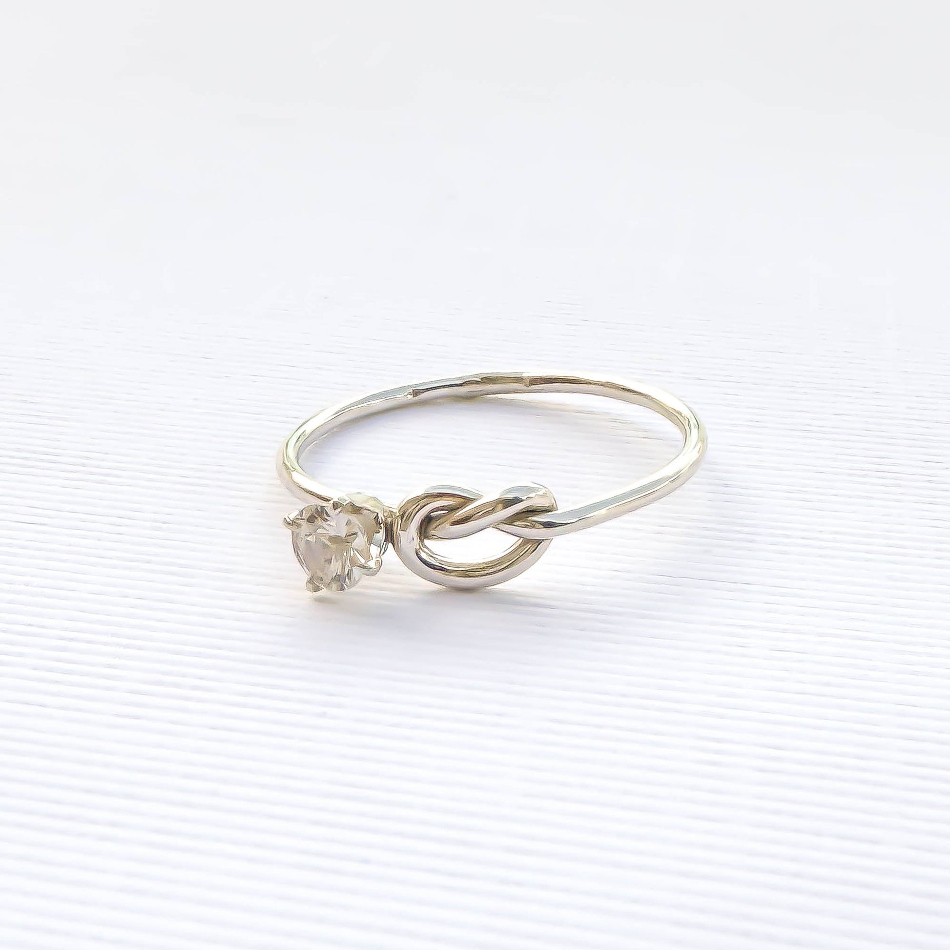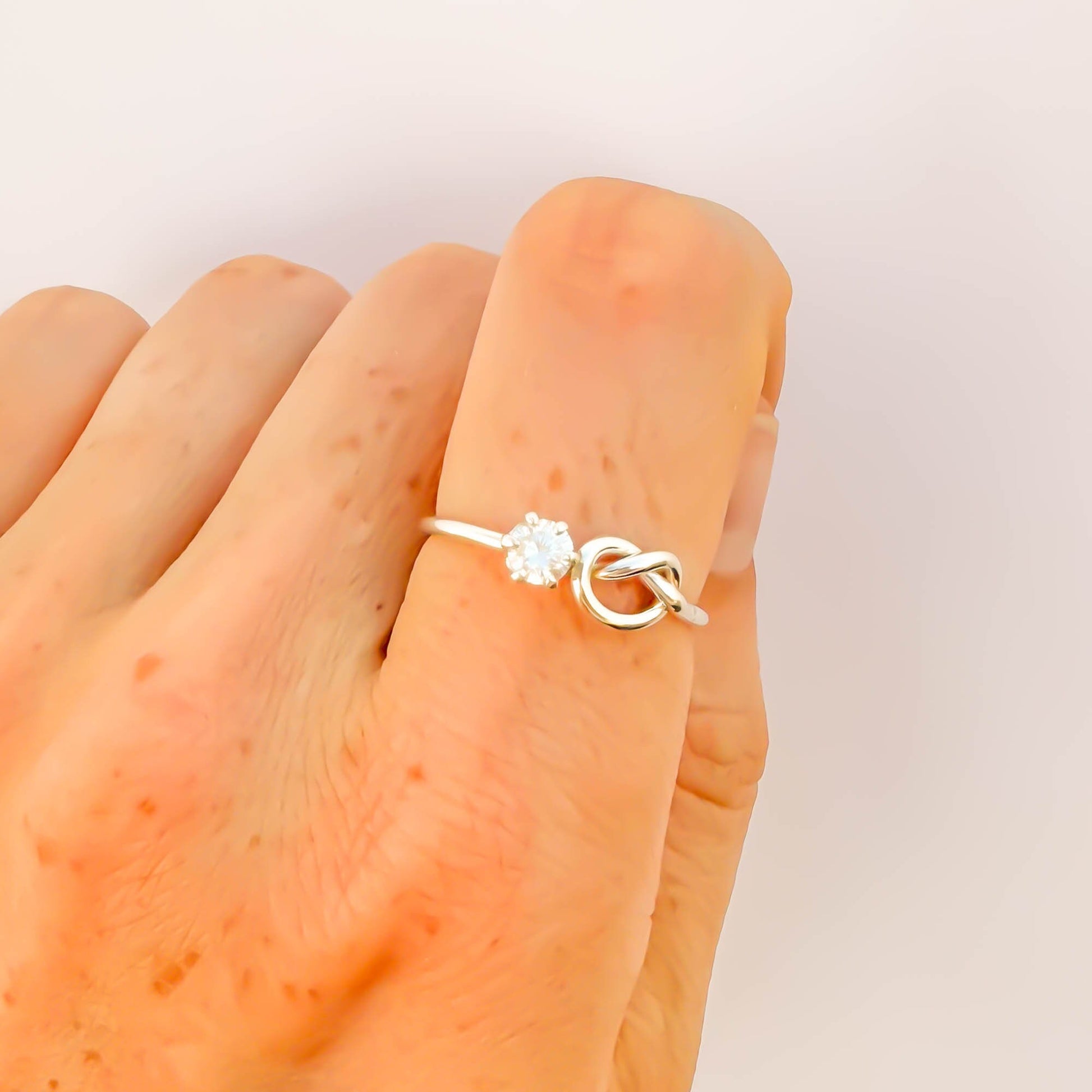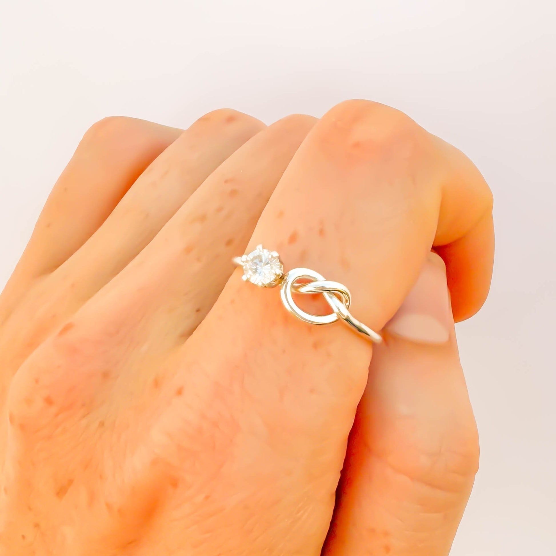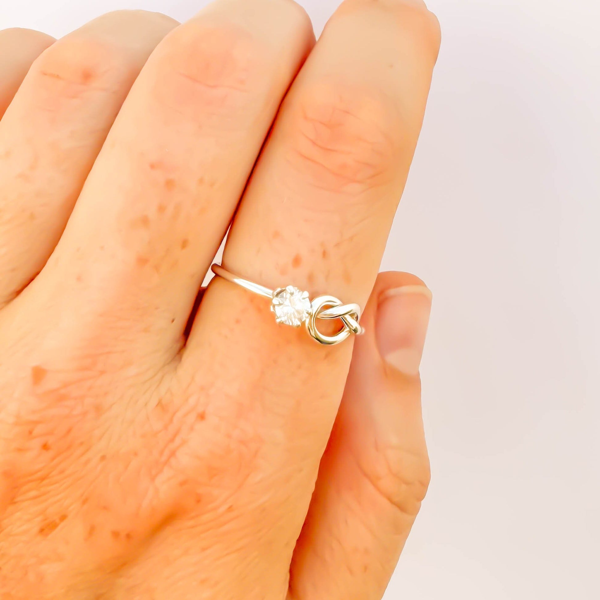 SIZE 9 Knot Ring & CZ 4 Prong Setting, Sterling Silver