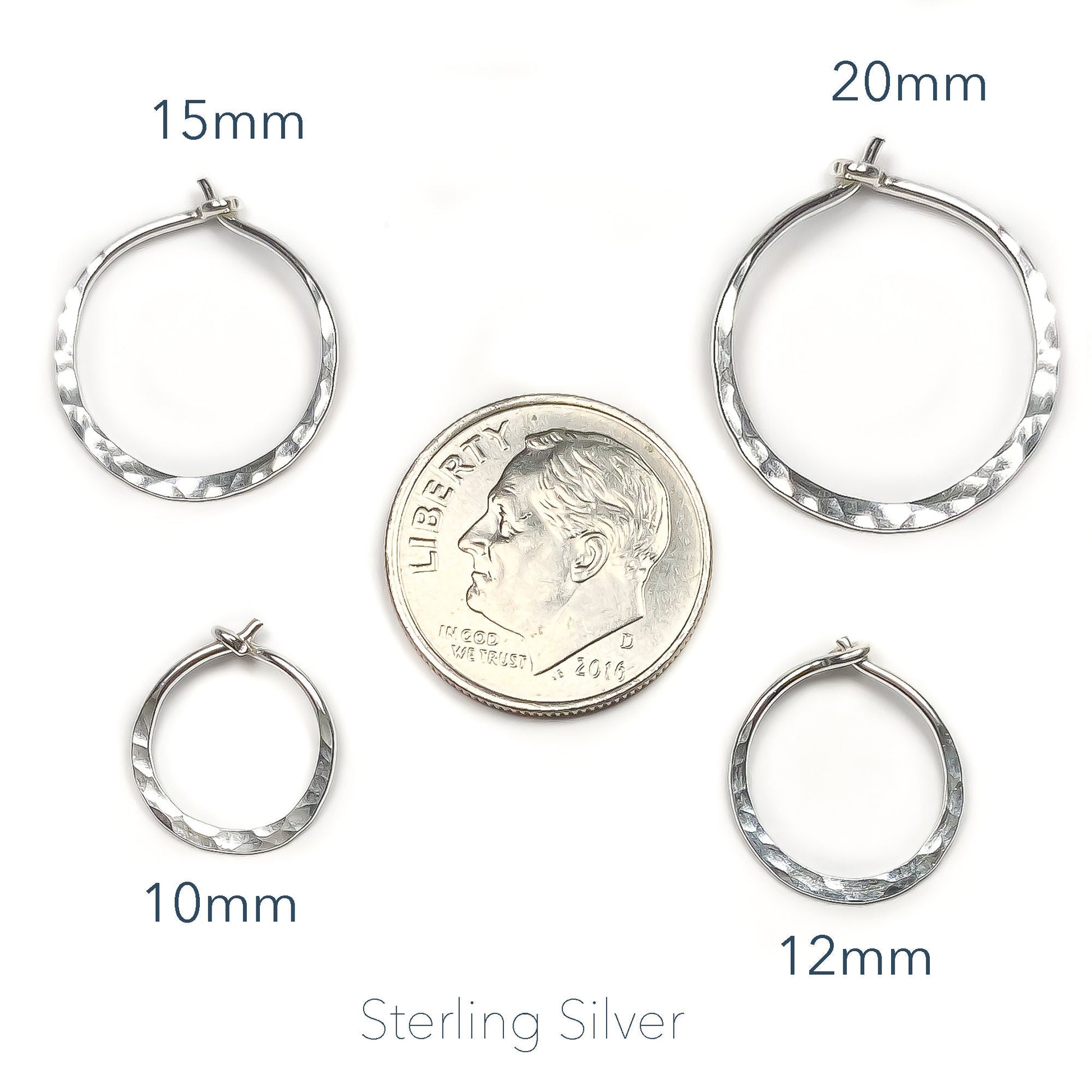 Small Hammered Hoop Earrings, Sterling Silver 12mm