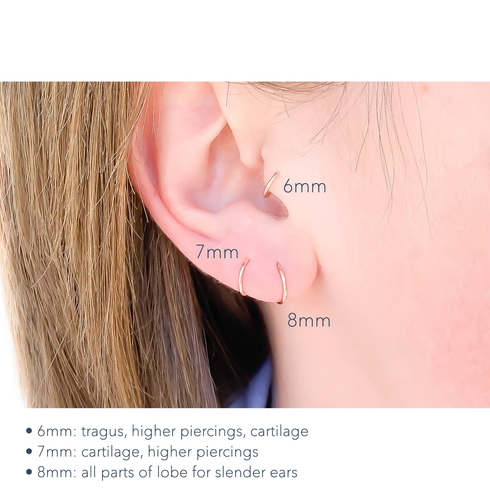 ••7mm: VERY SMALL—usually only for cartilage piercings, or high lobe 2nd or 3rd piercings