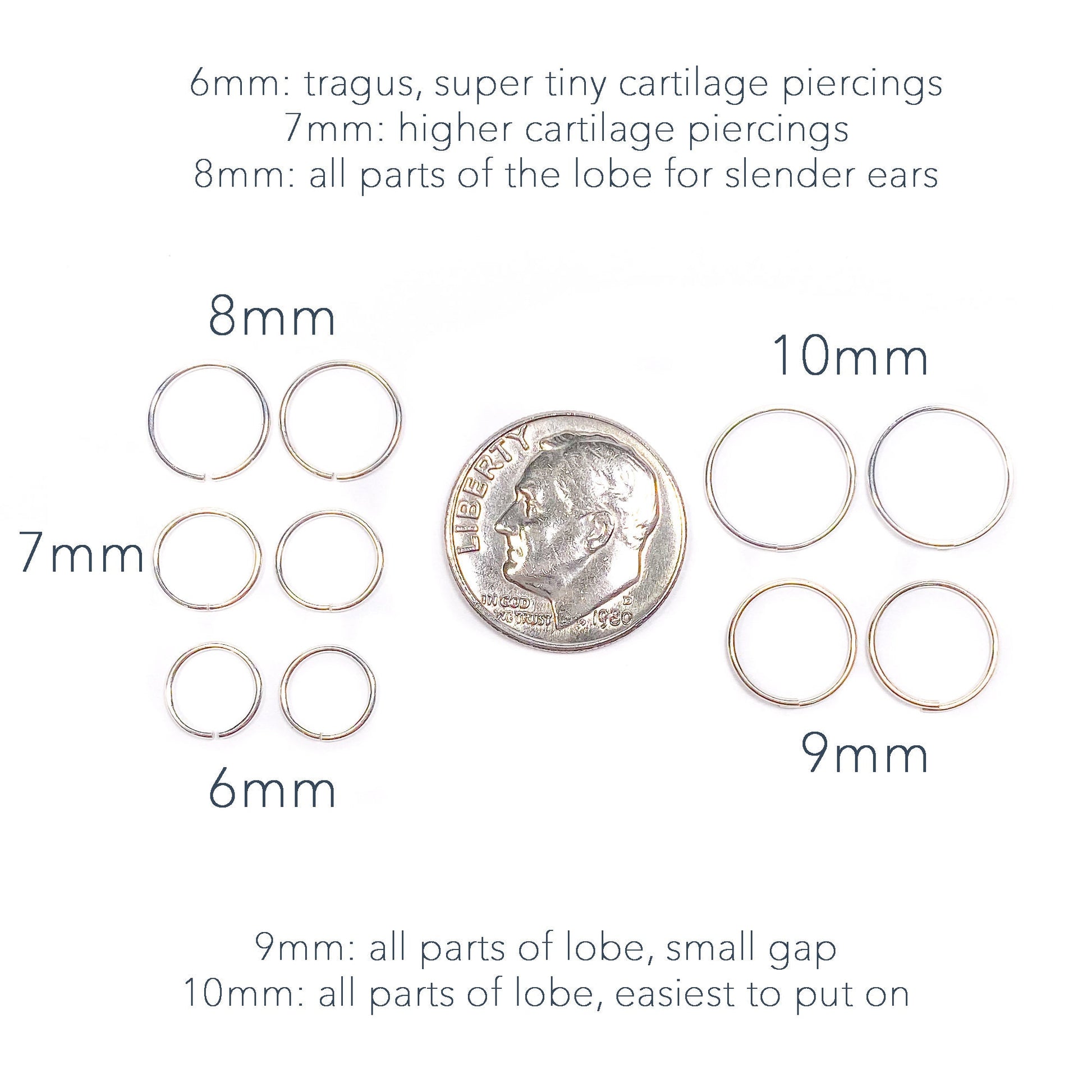 ••7mm: VERY SMALL—usually only for cartilage piercings, or high lobe 2nd or 3rd piercings