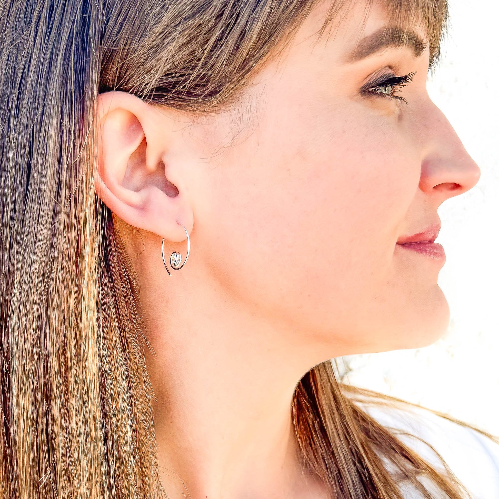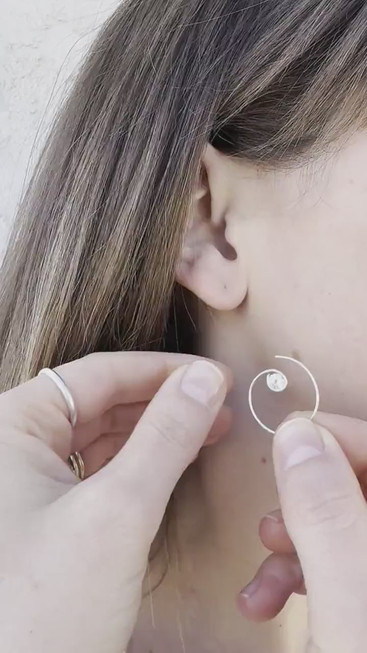 • These are threader earrings, and traditionally don't require earring backs. But for those with active lifestyles, and if you like a secure fit—we do offer 5mm silicone earring backs. Slide/twist on gently, to preserve the earring's shape.