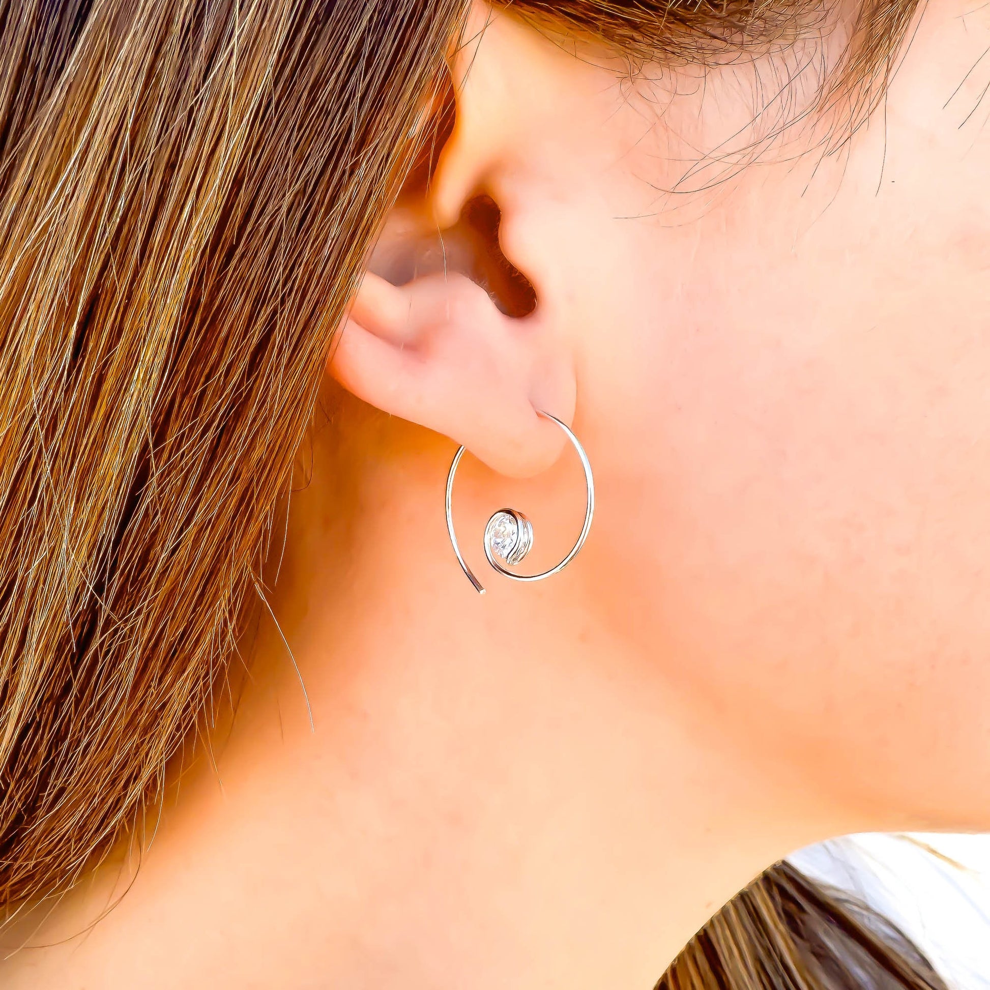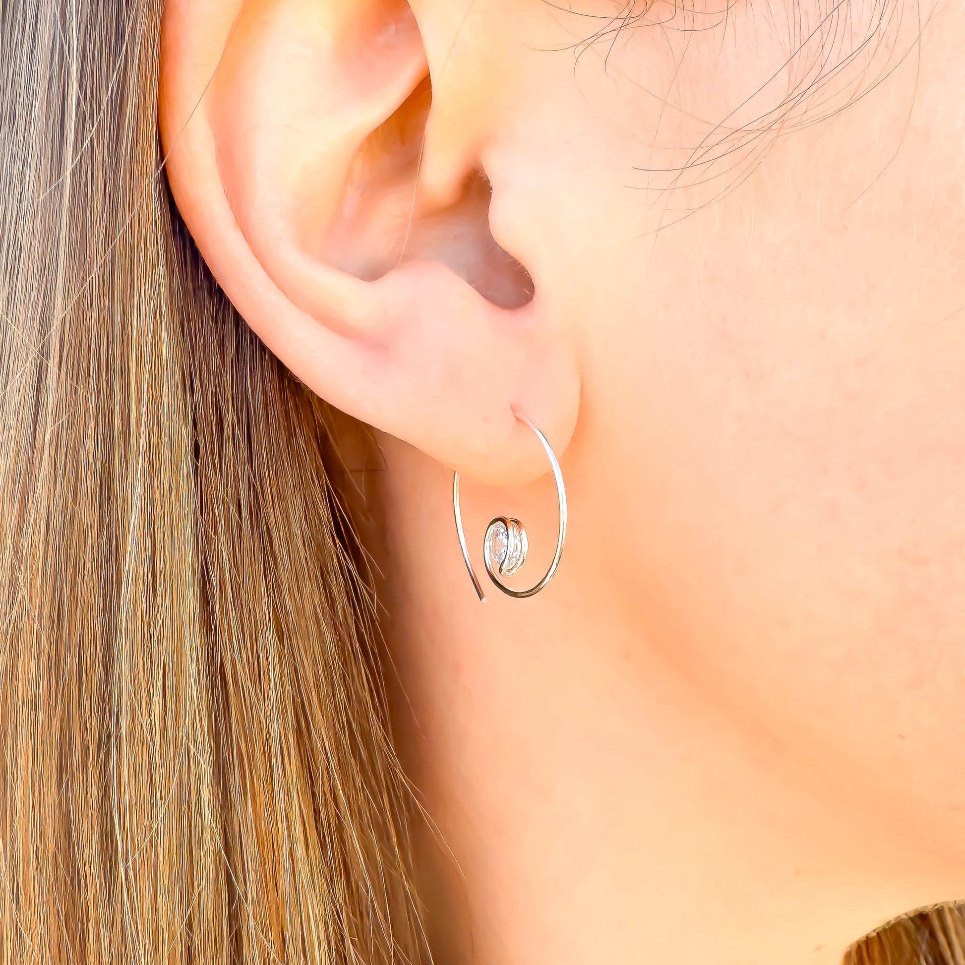 Threader CZ Spiral Hoop Earrings, Sterling Silver