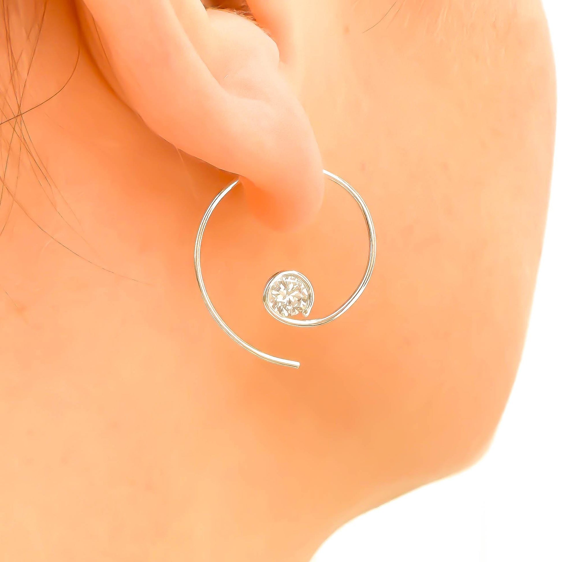 • Handcrafted spiral hoop earrings, with 5mm CZ (cubic zirconia) simulated diamonds.