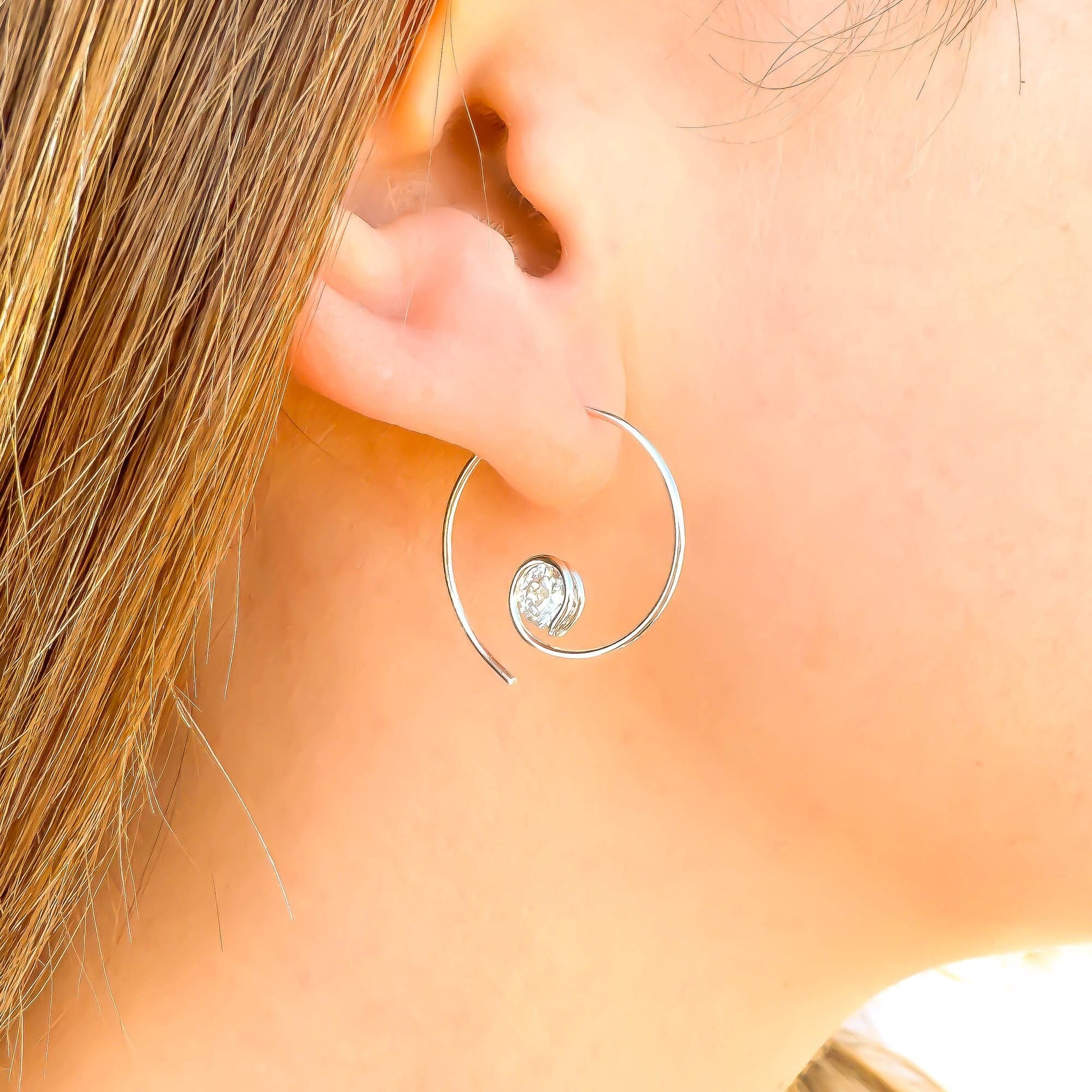 • Handcrafted spiral hoop earrings, with 5mm CZ (cubic zirconia) simulated diamonds.
