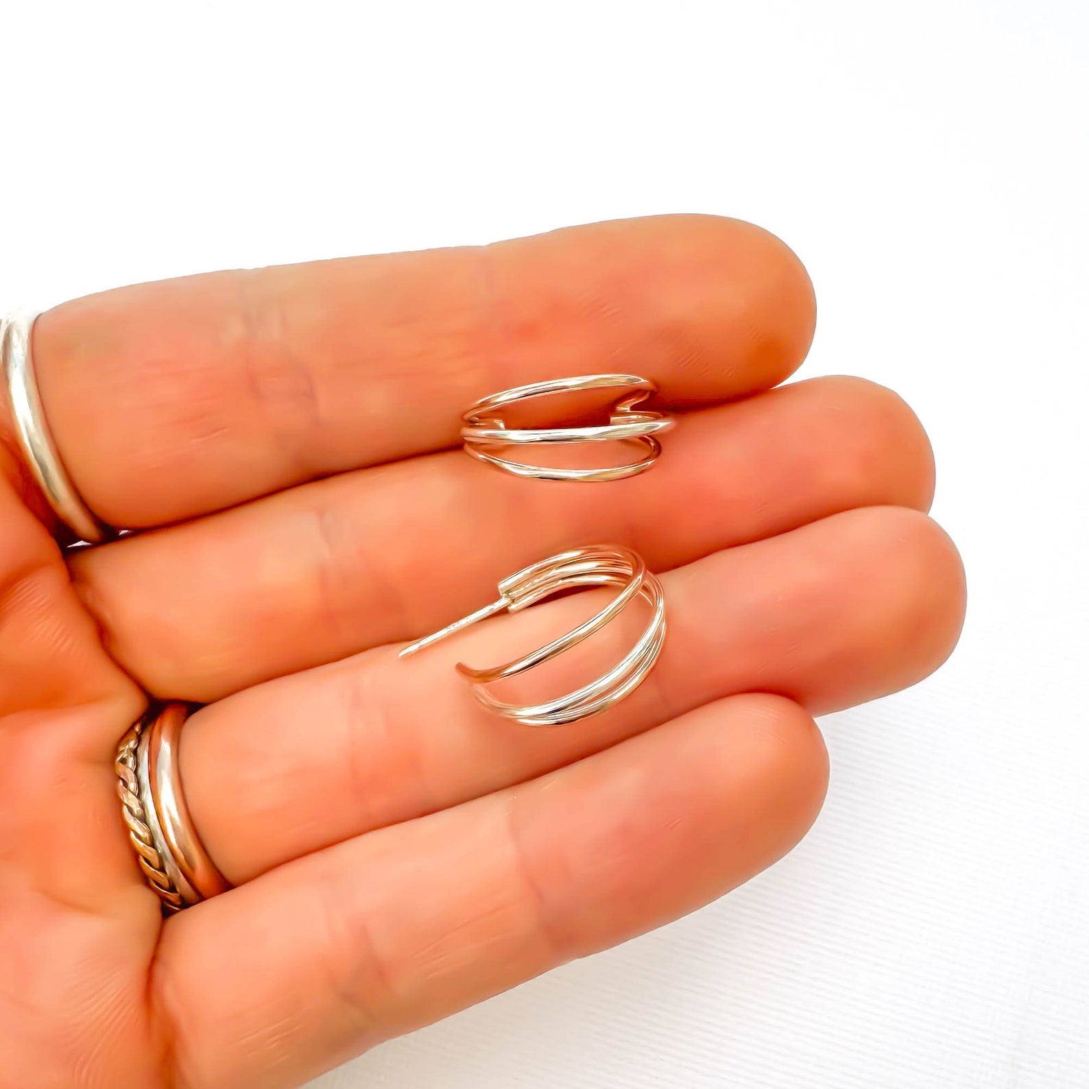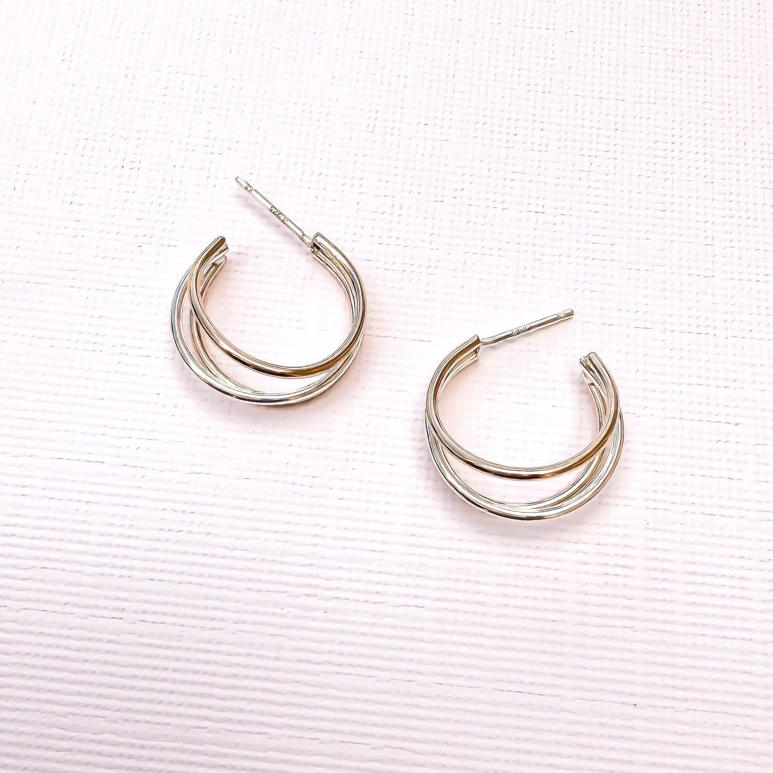 Triple Hoop Earrings with Post, 14K Gold Filled & Sterling Silver