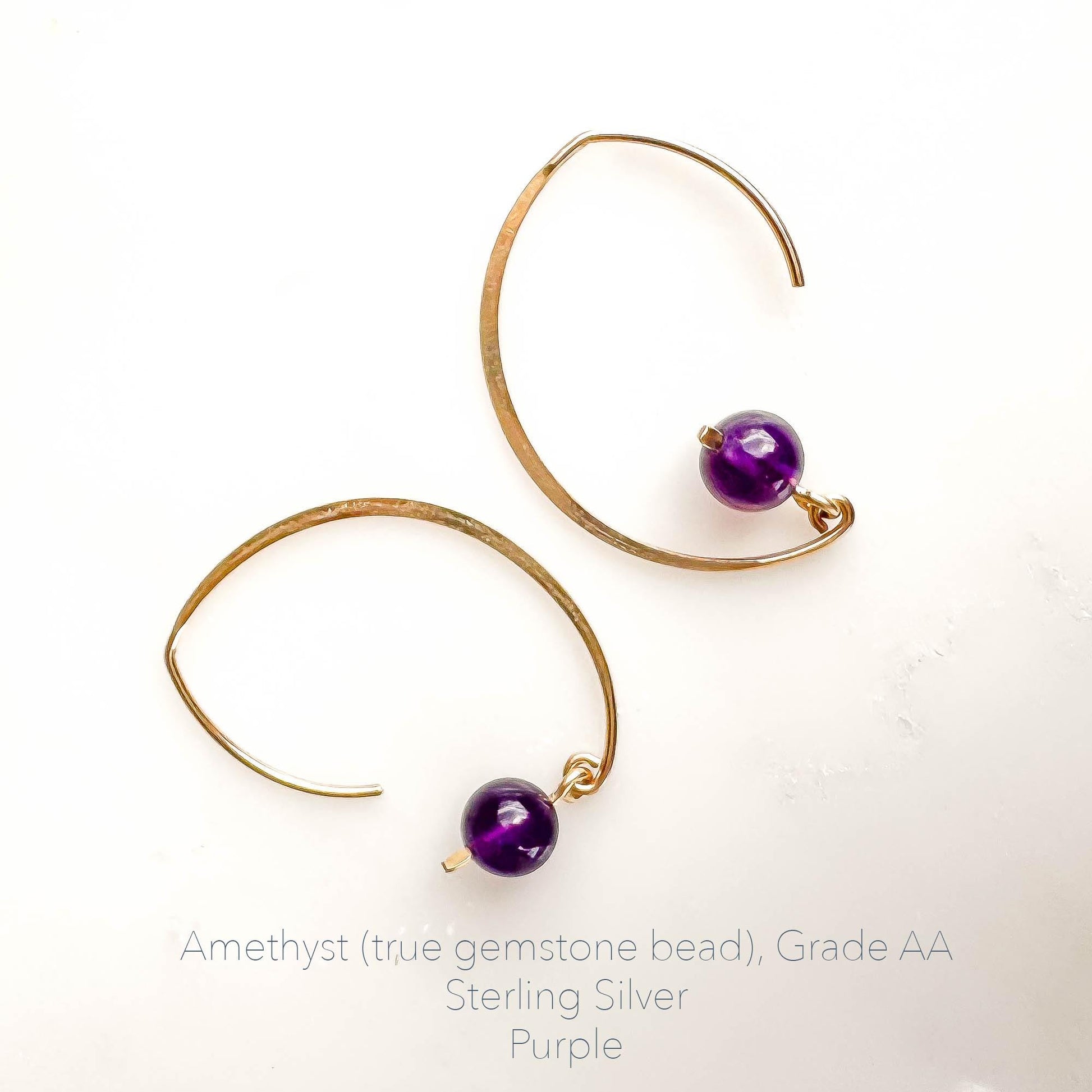 • These handcrafted swoop half hoop earrings, feature brilliant 5mm gemstone beads. Choose between Amethyst (6mm, purple, gemstone), Onyx (6mm, black, gemstone), Pearl (5mm, crystal core, simulated pearl), or Turquoise (5mm, simulated resin/reconstituted).