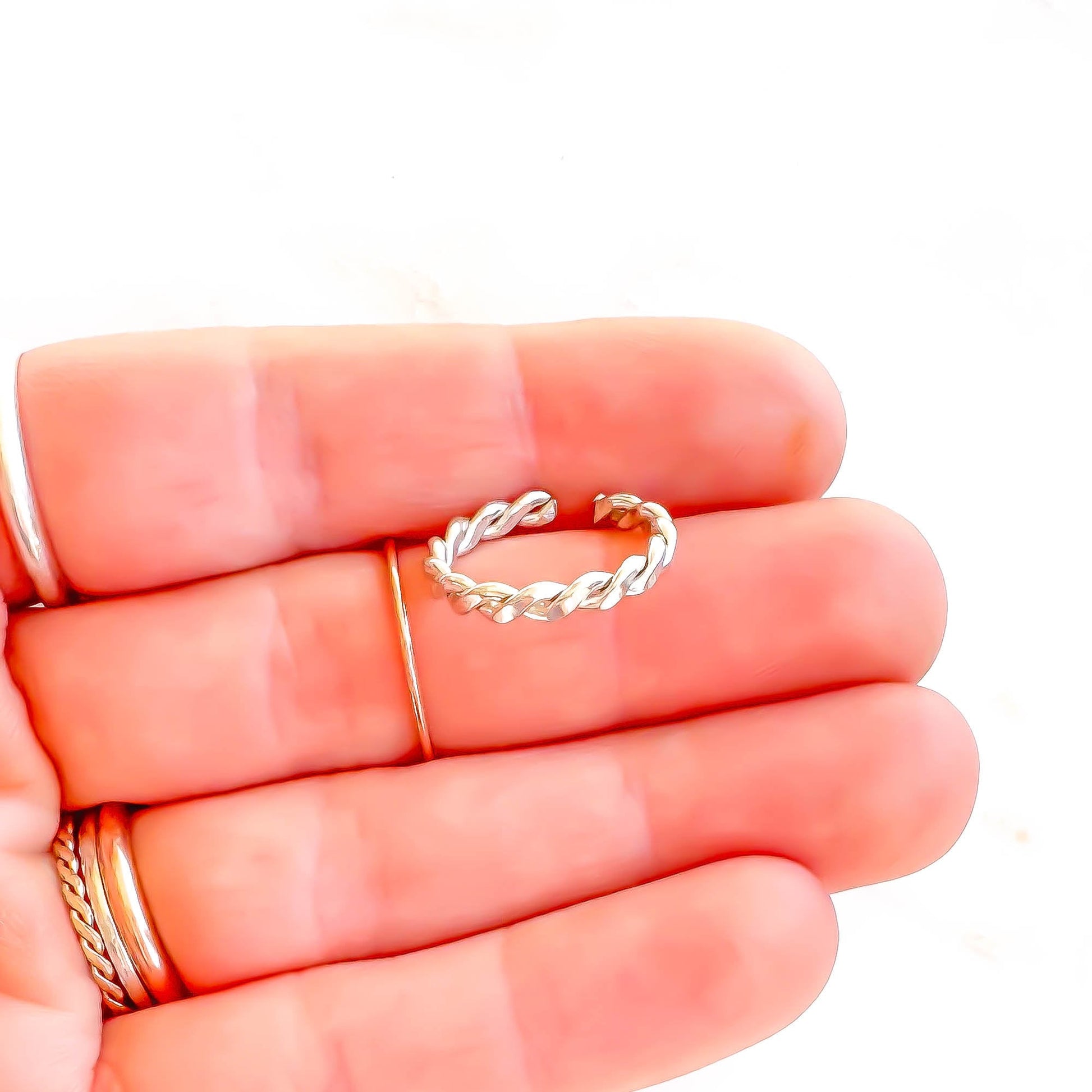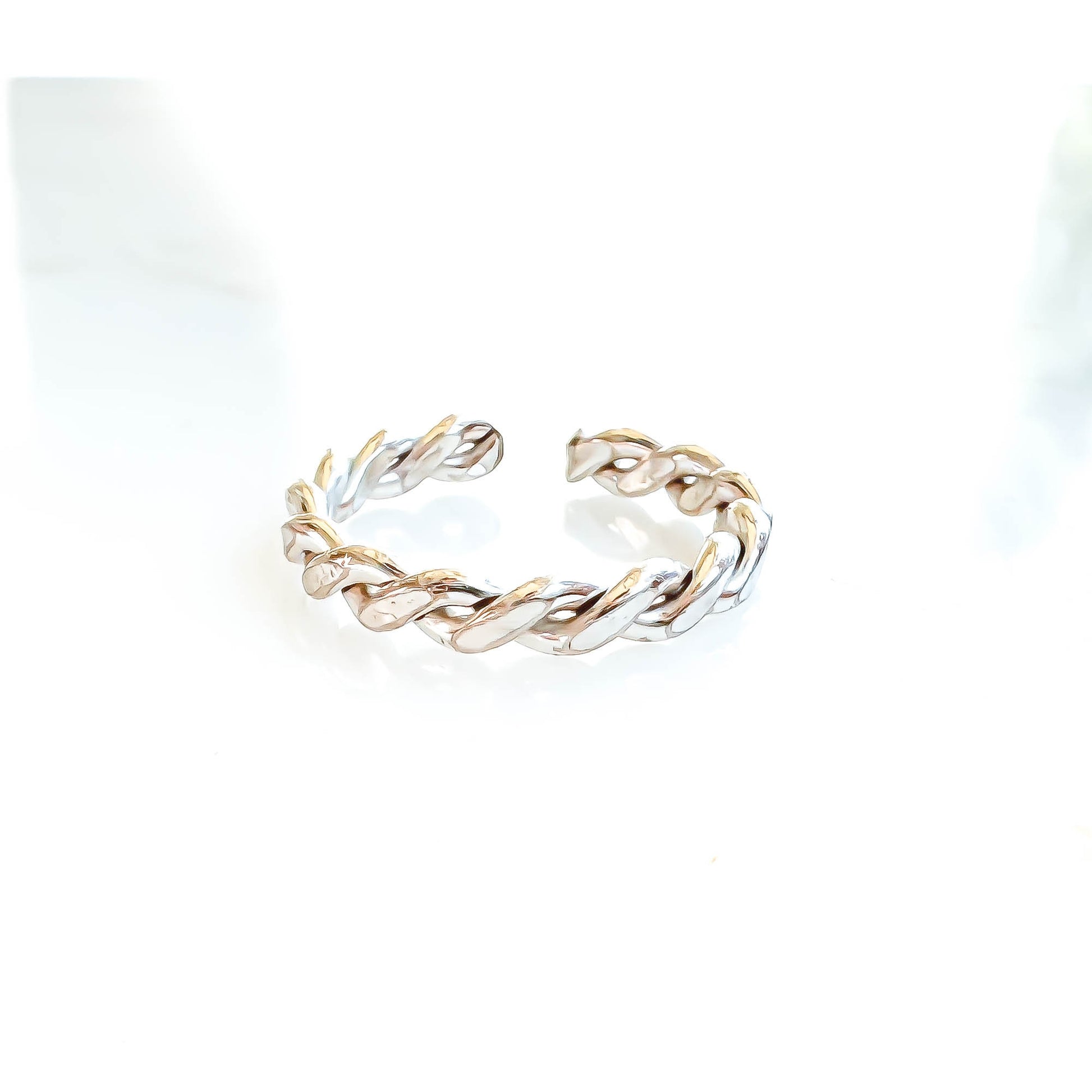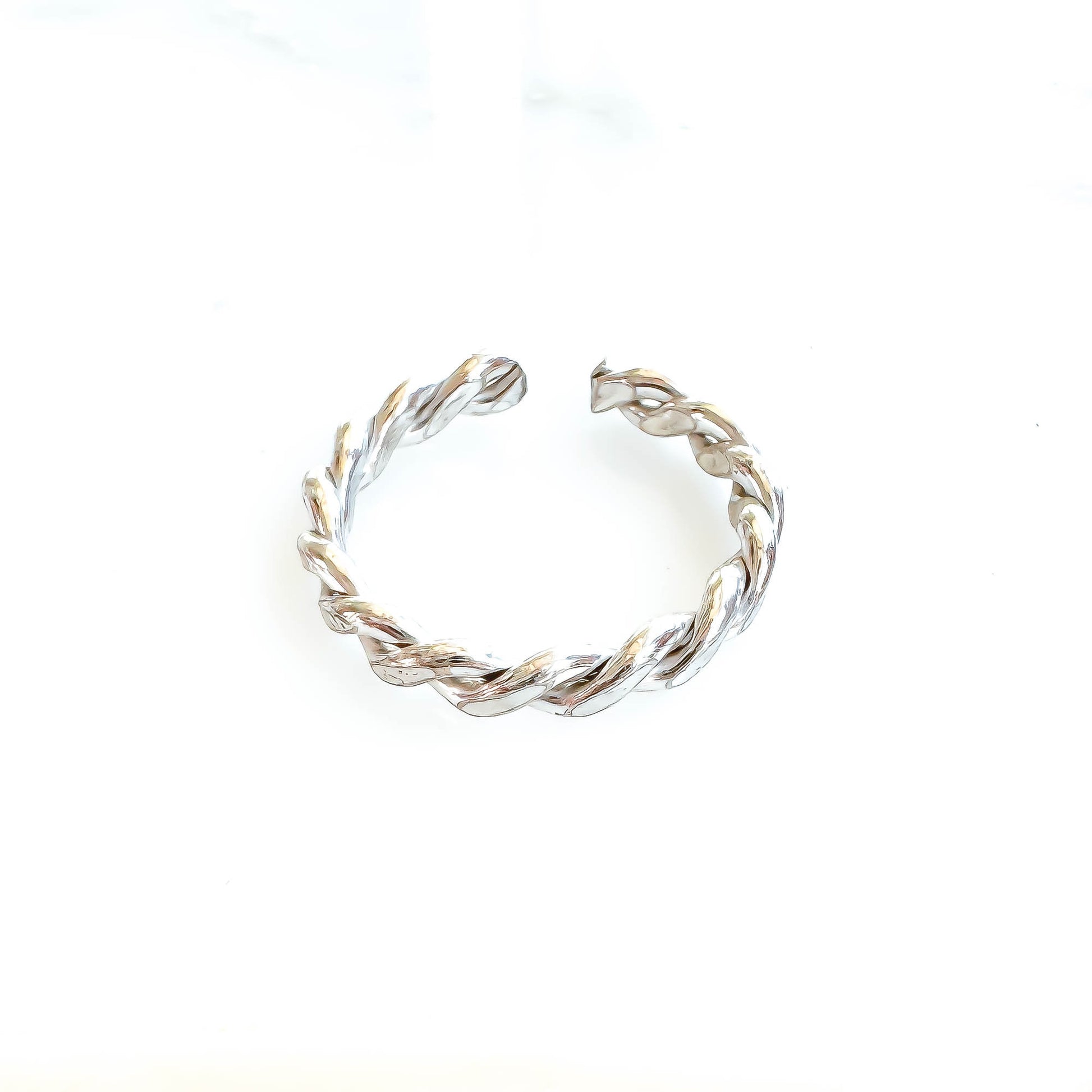 • Made out of 2 strands of 925 sterling silver 16 gauge round wires that are intertwined and smashed making them about 3 mm wide.
