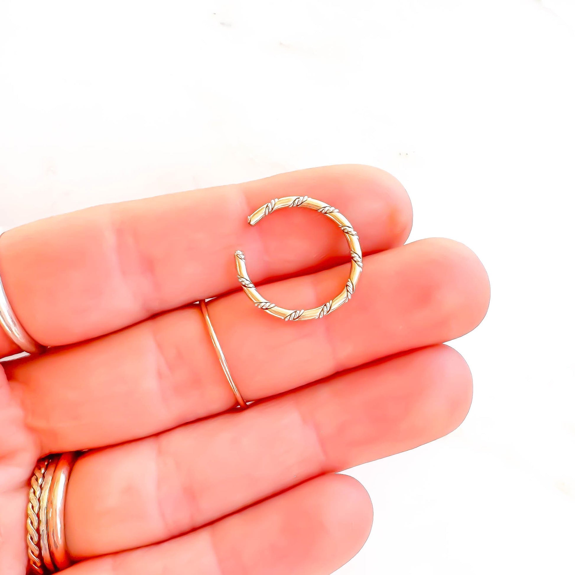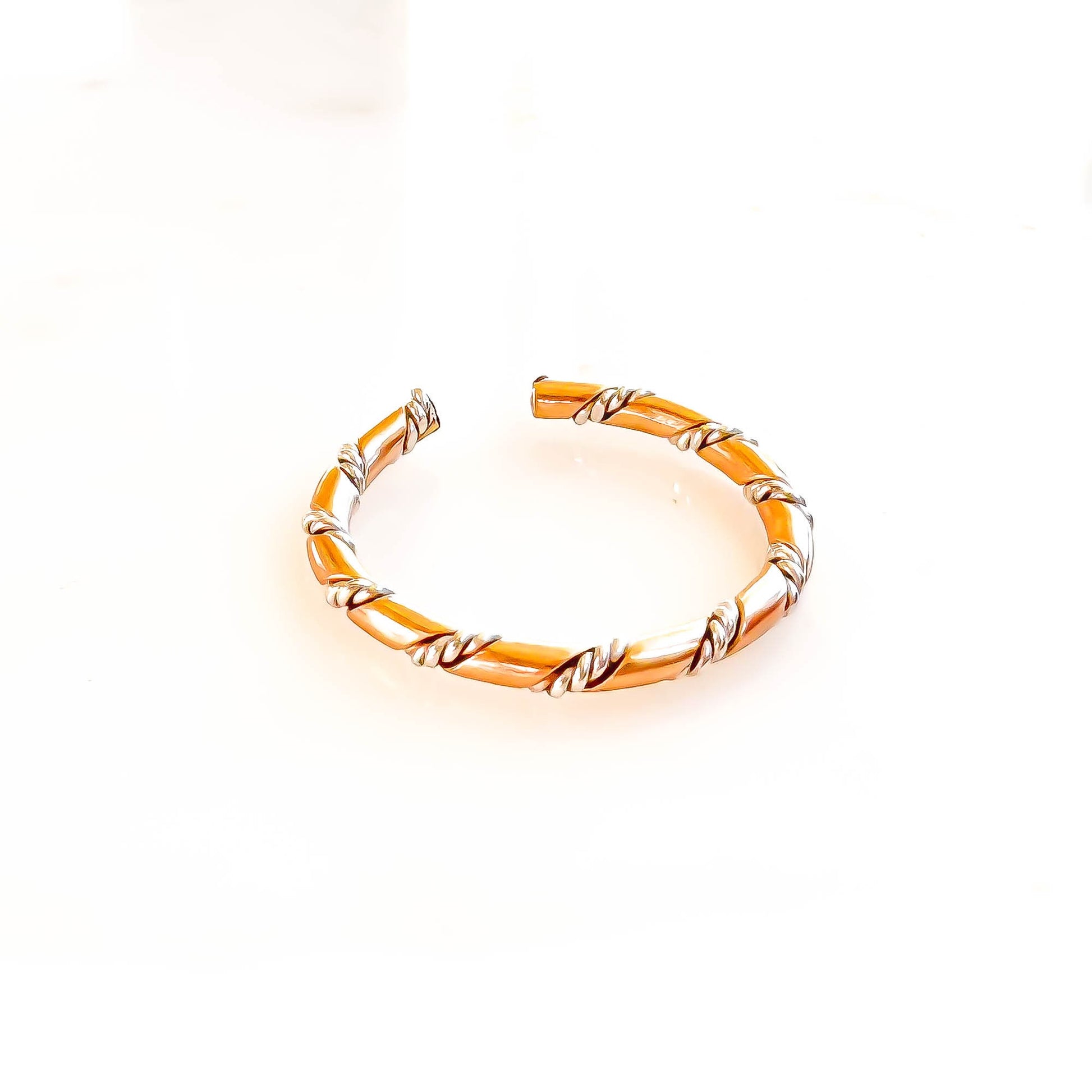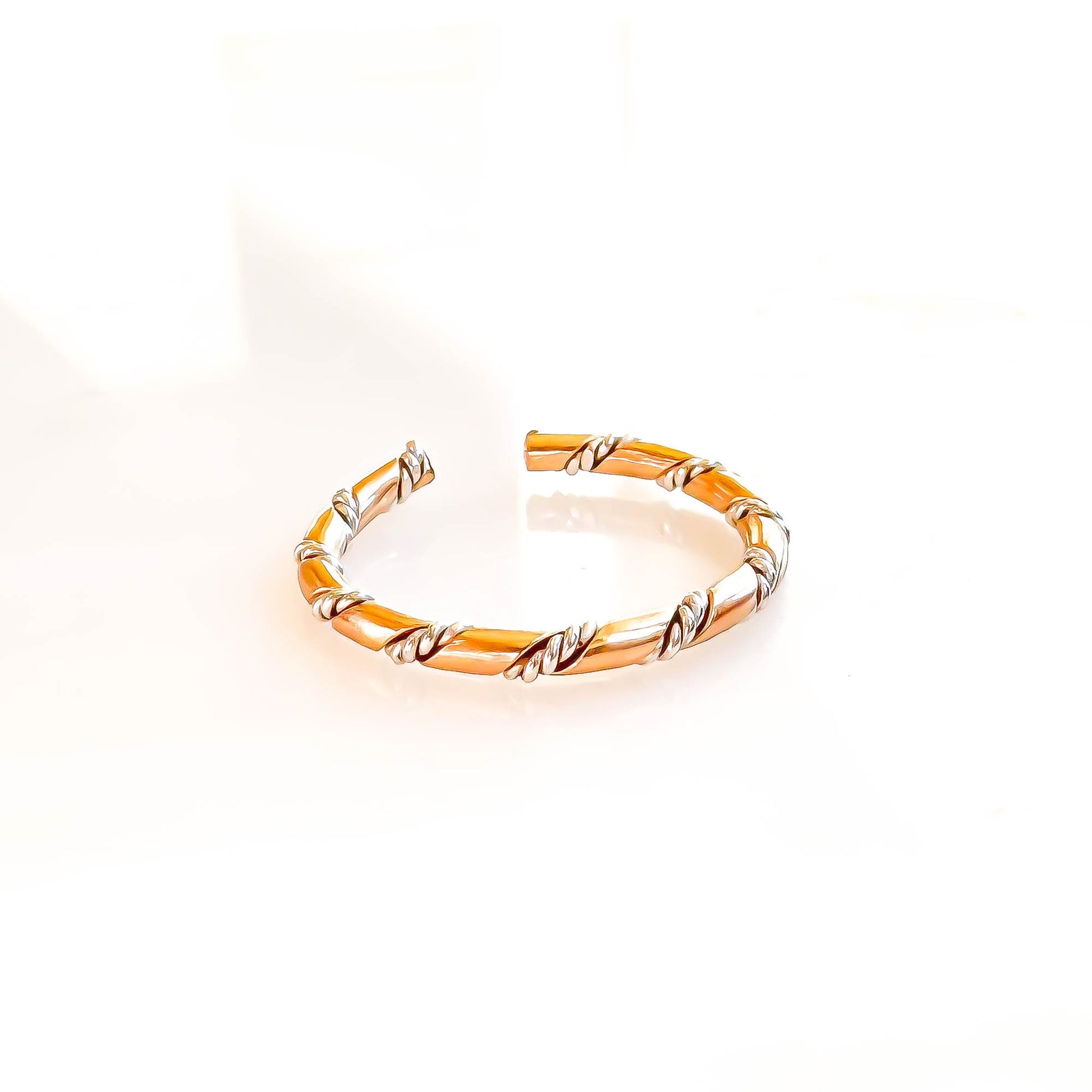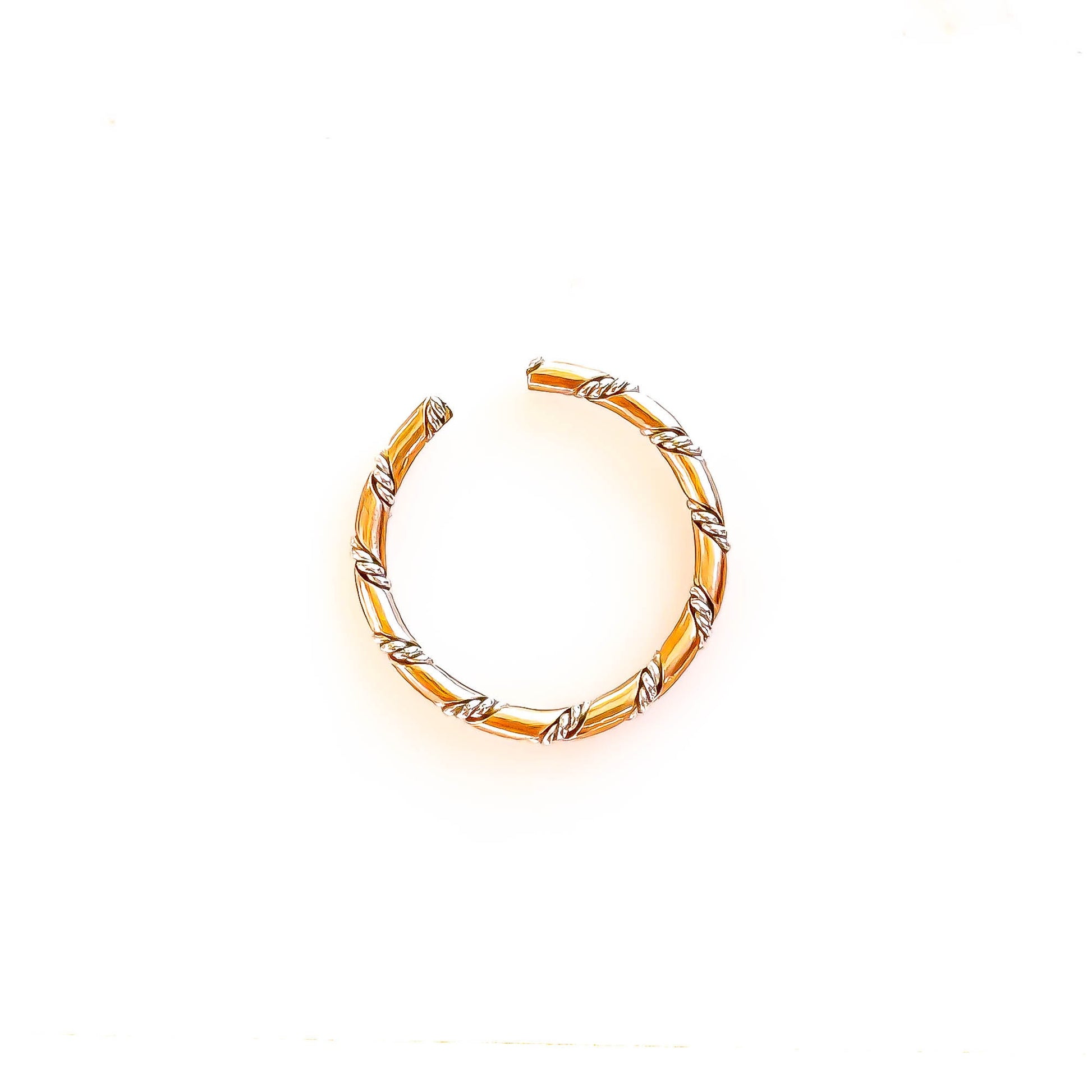 • Made out of 14 gauge 1/2 round 14K gold filled (1.6mm x .8mm) twisted with 2 strands of twisted 24 gauge round 925 sterling silver wires (each strand .5mm) to make a rope like pattern.