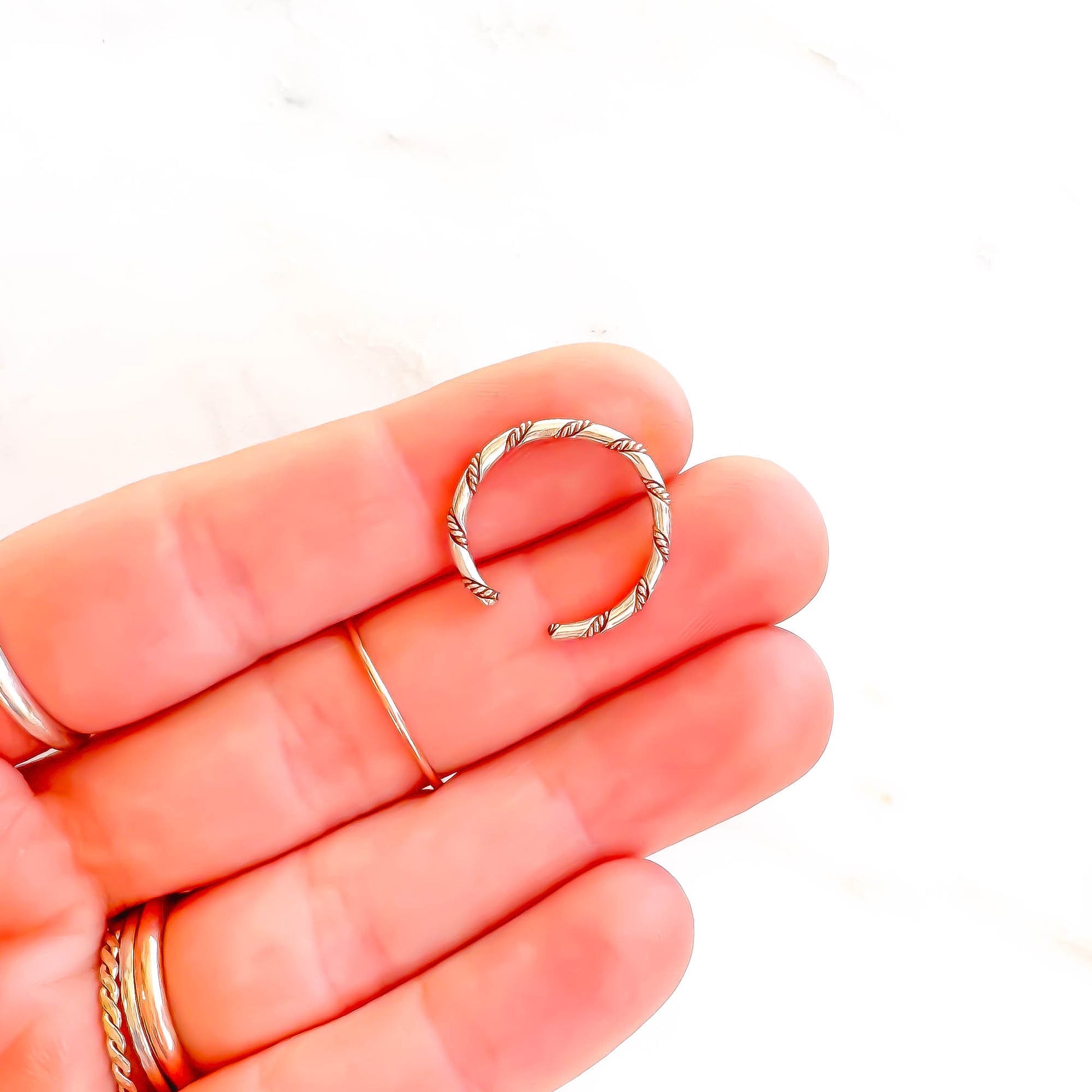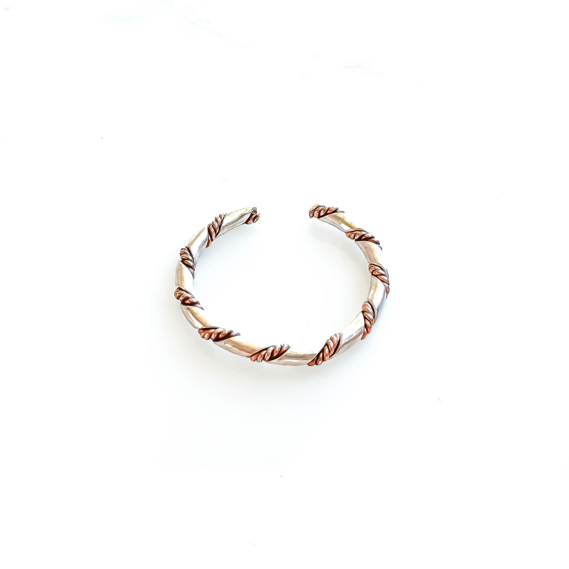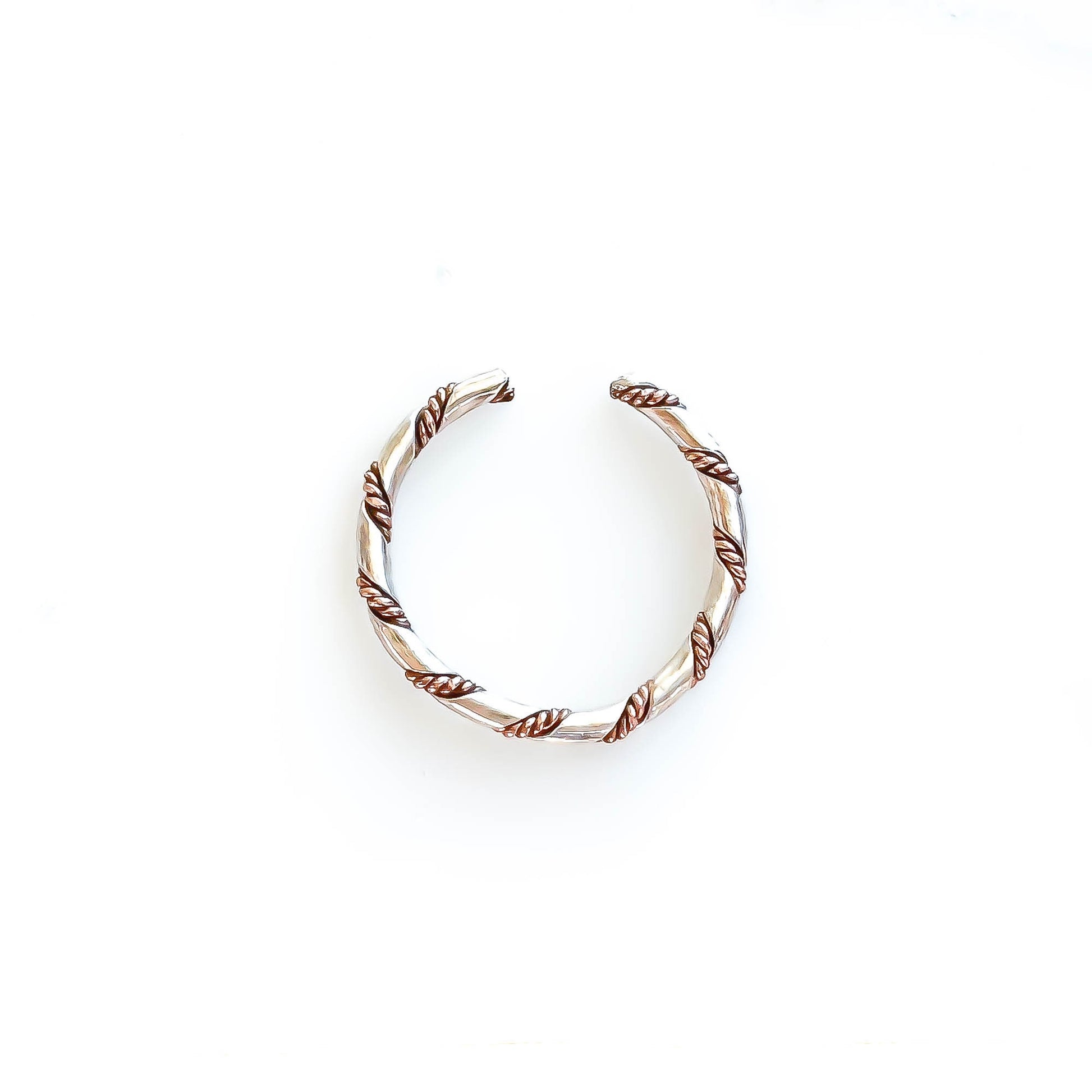 • Handmade out of 14 gauge 1/2 round 925 sterling silver (1.6mm x .8mm) twisted with 2 strands of twisted 24 gauge round 14K rose gold filled wires (each strand .5mm) to make a creative rope like pattern.