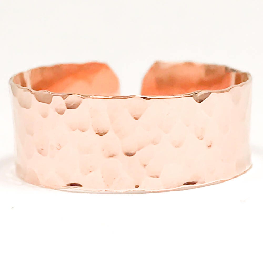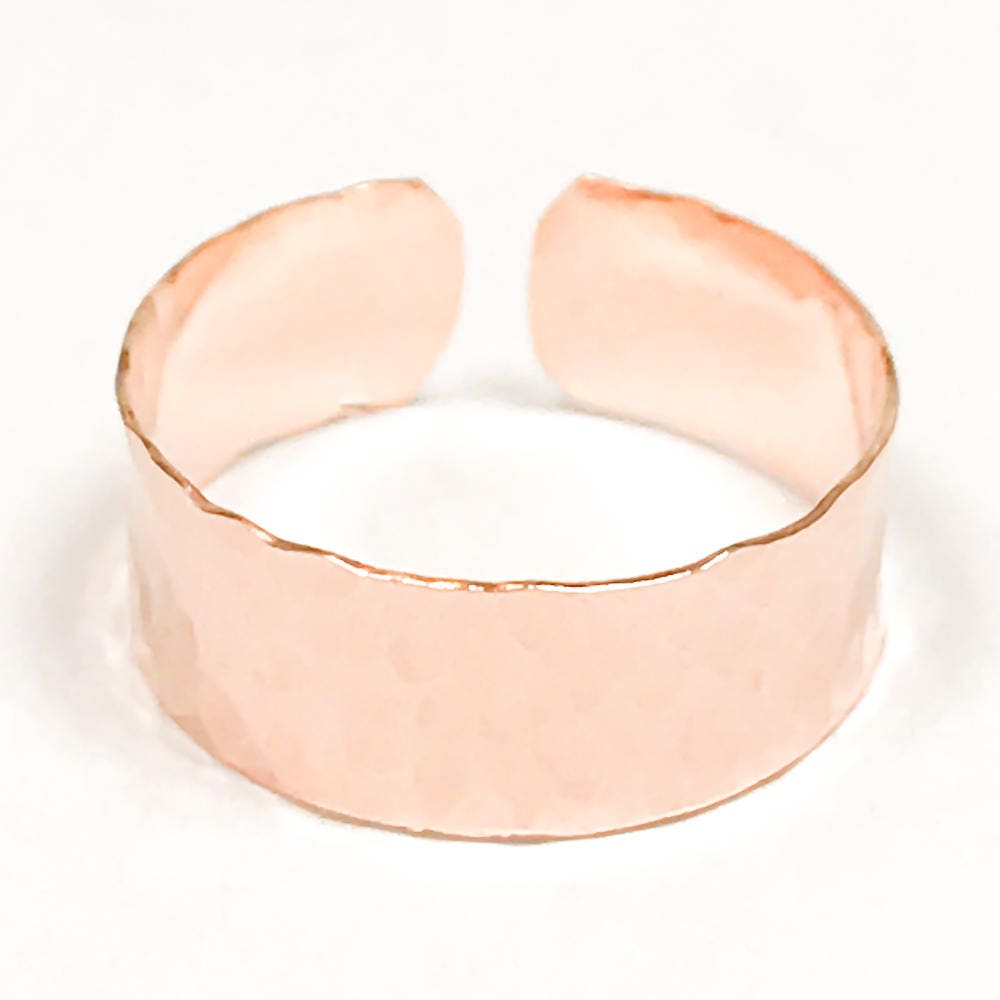 • Pictured: wide hammered toe ring handcrafted out of 14K rose gold filled wire. Also available in 925 sterling silver and 14K gold filled.